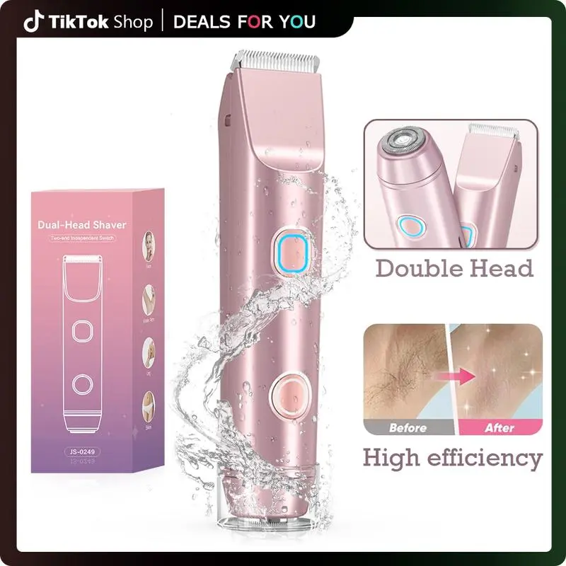 Bikini Trimmer for Women, 1 Box Rechargeable 2 in 1 Women Electric Shaver Dual Head Waterproof Hair Removal Machine for Armpits and Legs