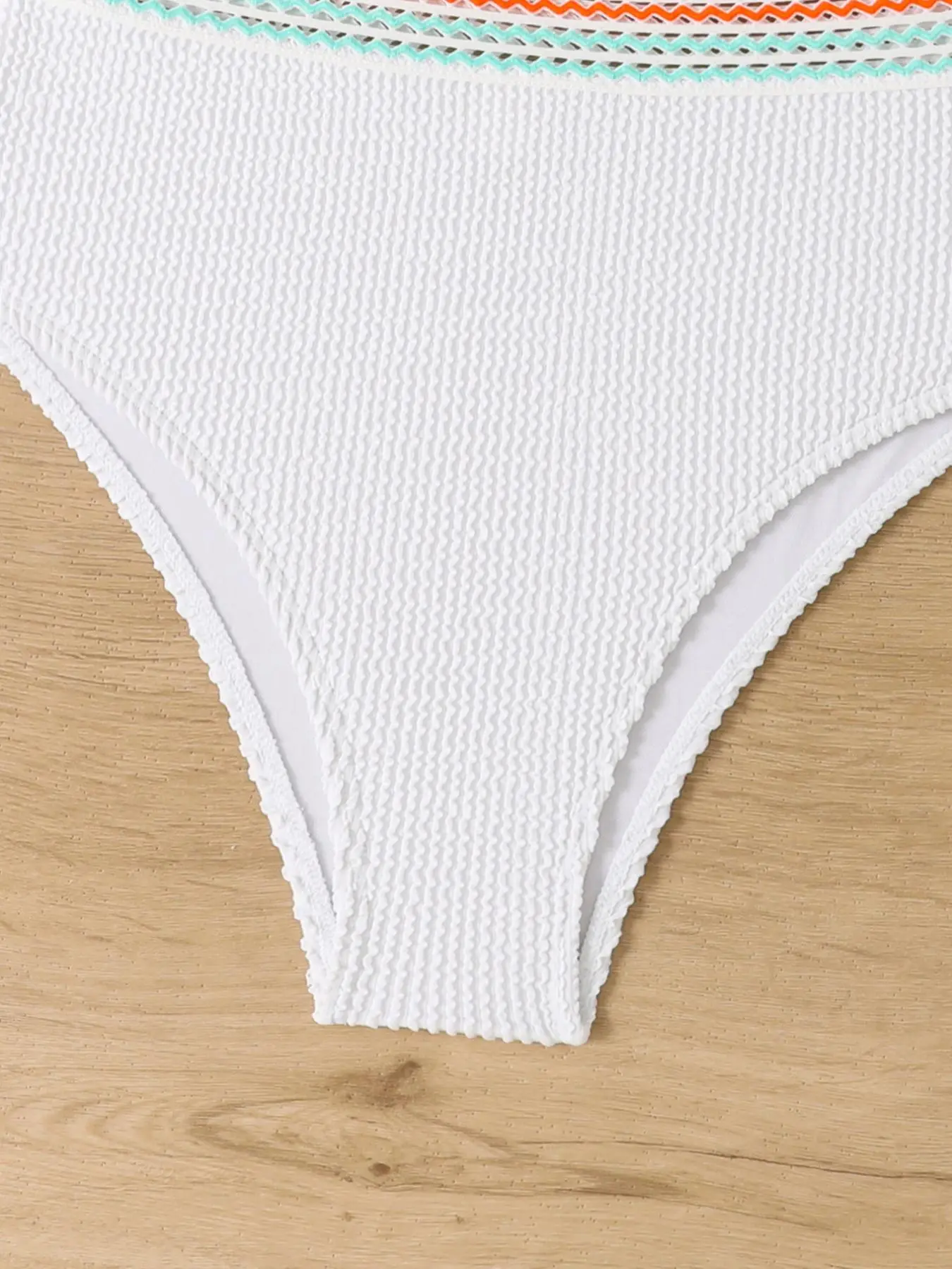 Fits great but u expected the back of the bottoms to fit my bottom better and they are not as wide as i would like. The white and blue area is a thin band but still a super cute bathing suit for the price