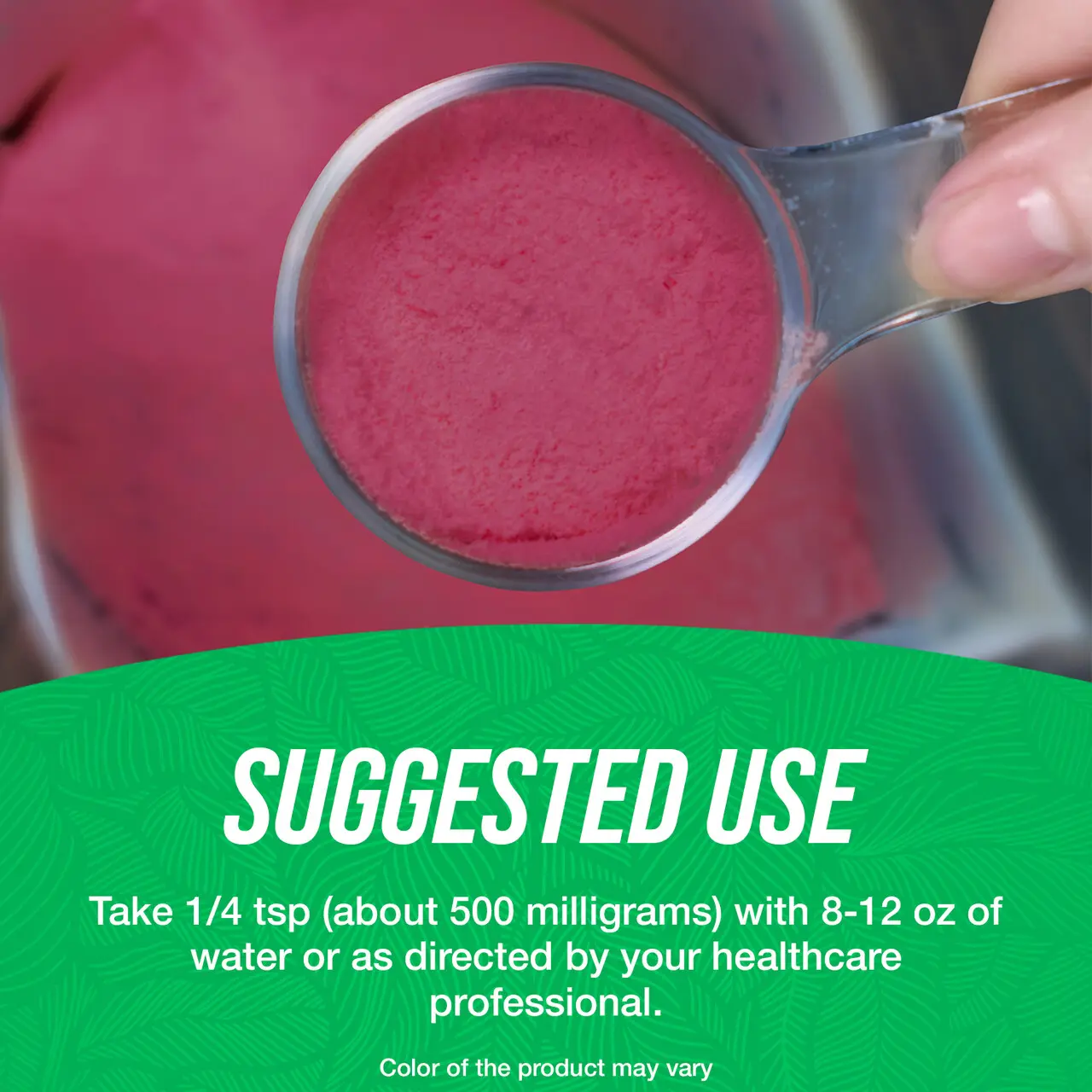 Suggested Use: As a dietary supplement, take 500 mg (about 1/5 tsp) once or twice daily, or as directed by a physician.