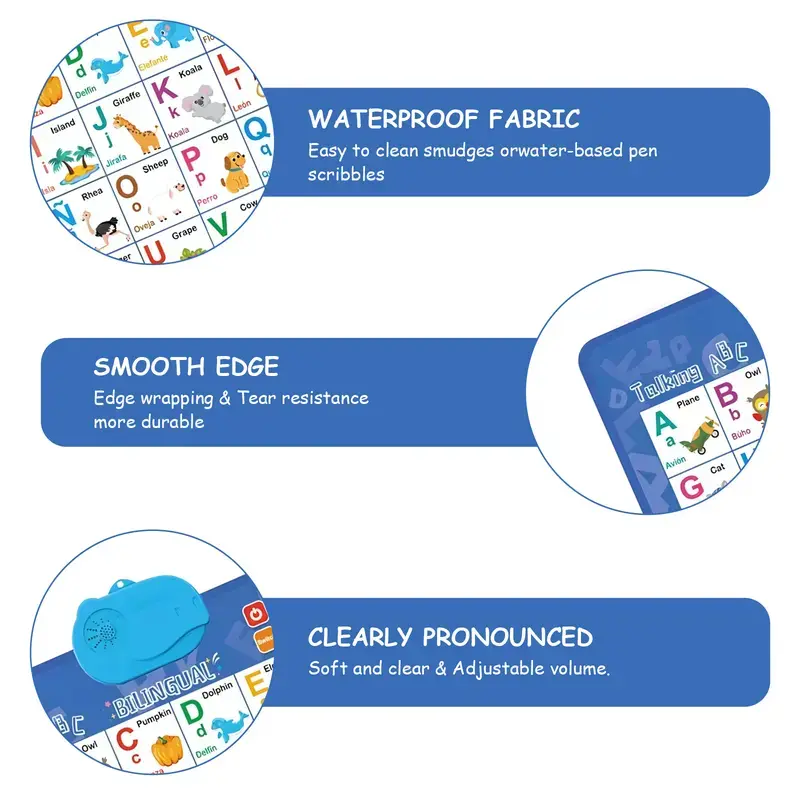 Adjustable Volume: Designed with a kid-friendly interface, these Spanish charts for toddlers 1-3 offer an adjustable sound feature. It makes these English and Spanish learning charts adaptable to various environments. Plus, it promotes bilingual early literacy through interactive alphabet and number activities.