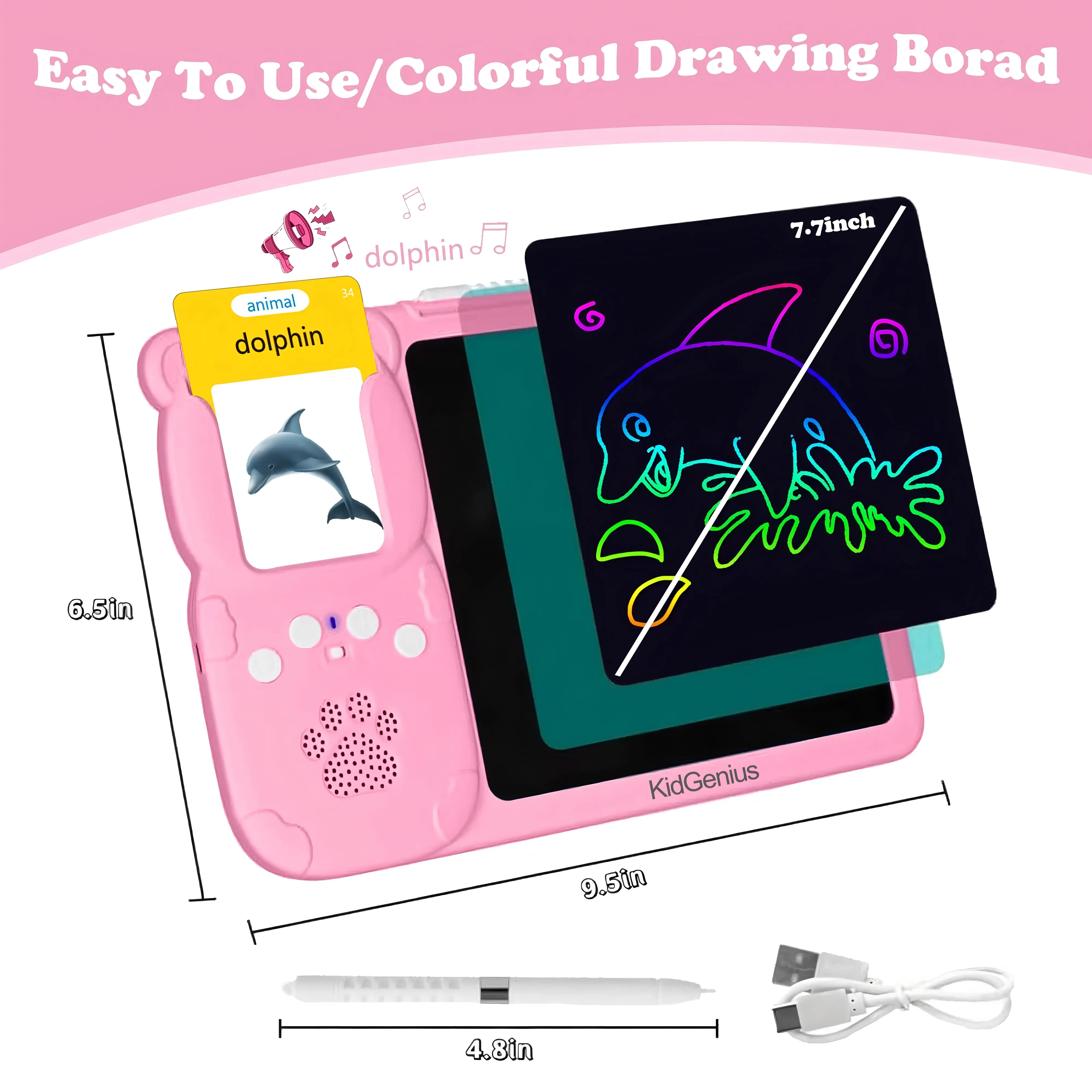 Innovative voice flashcards are linked with the LCD drawing board to create a “2-in-1” learning and creation scenario: cognizing things through interactive cards and practicing doodling on the drawing board at the same time, stimulating creativity and artistic expression.