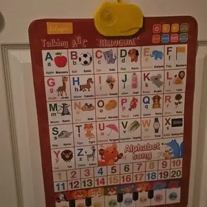 This chart is great for learning English, but not Spanish. In English it makes sense: A for Apple. But in Spanish it says A for Manzana… and that starts with M, not A! Super confusing for kids. Works best only in English.