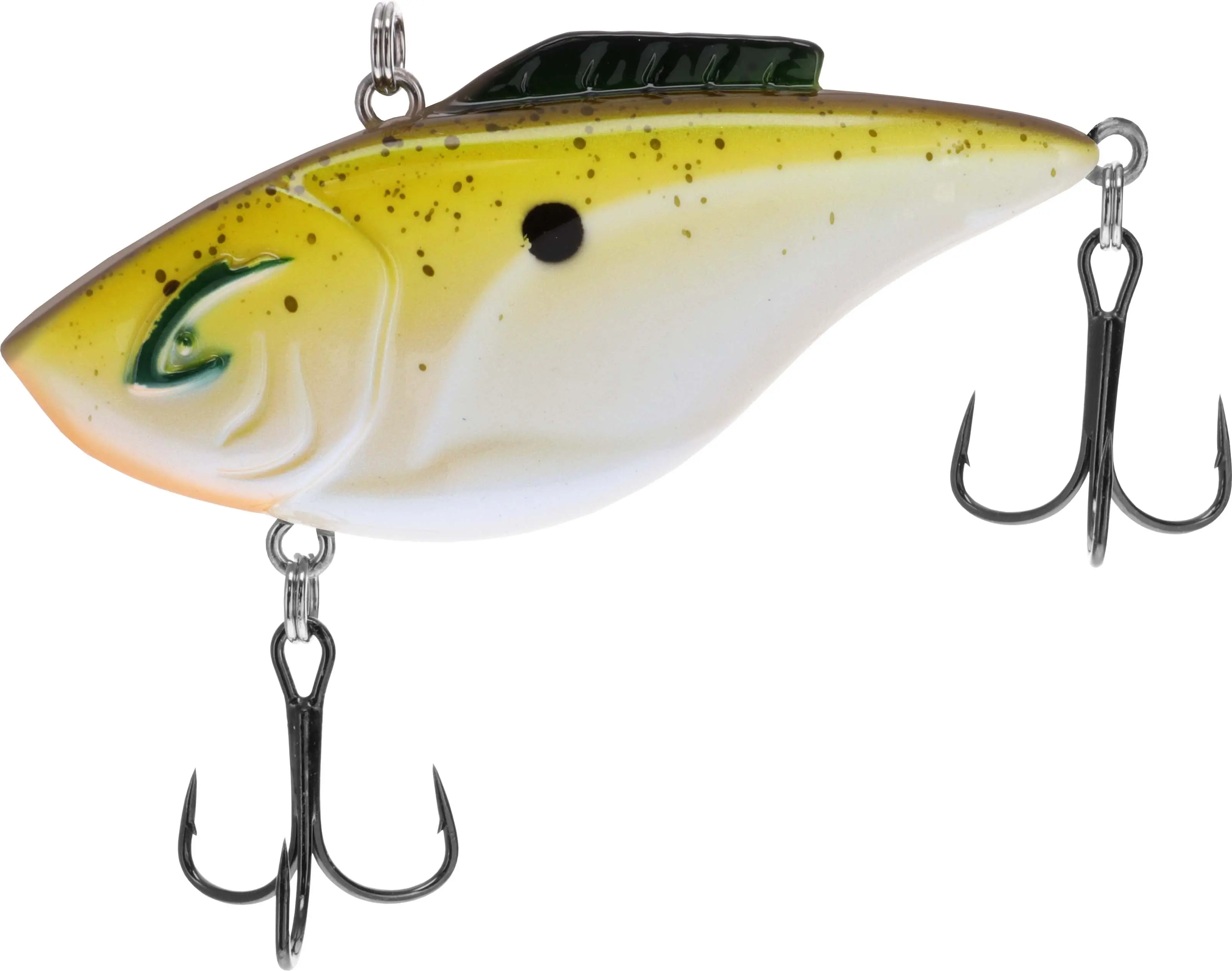 This new offering stands out with its distinct hammering action, creating a unique dynamic during retrieval that not only imparts a rocking motion to the rod tip but also activates Tri-Tone sound chambers. As an additional allure, the Hammer-Trap exhibits a fluttering action when stopped on the retrieve, enhancing its appeal alongside a contemporary profile and prompting aggressive strikes from fish in its vicinity.