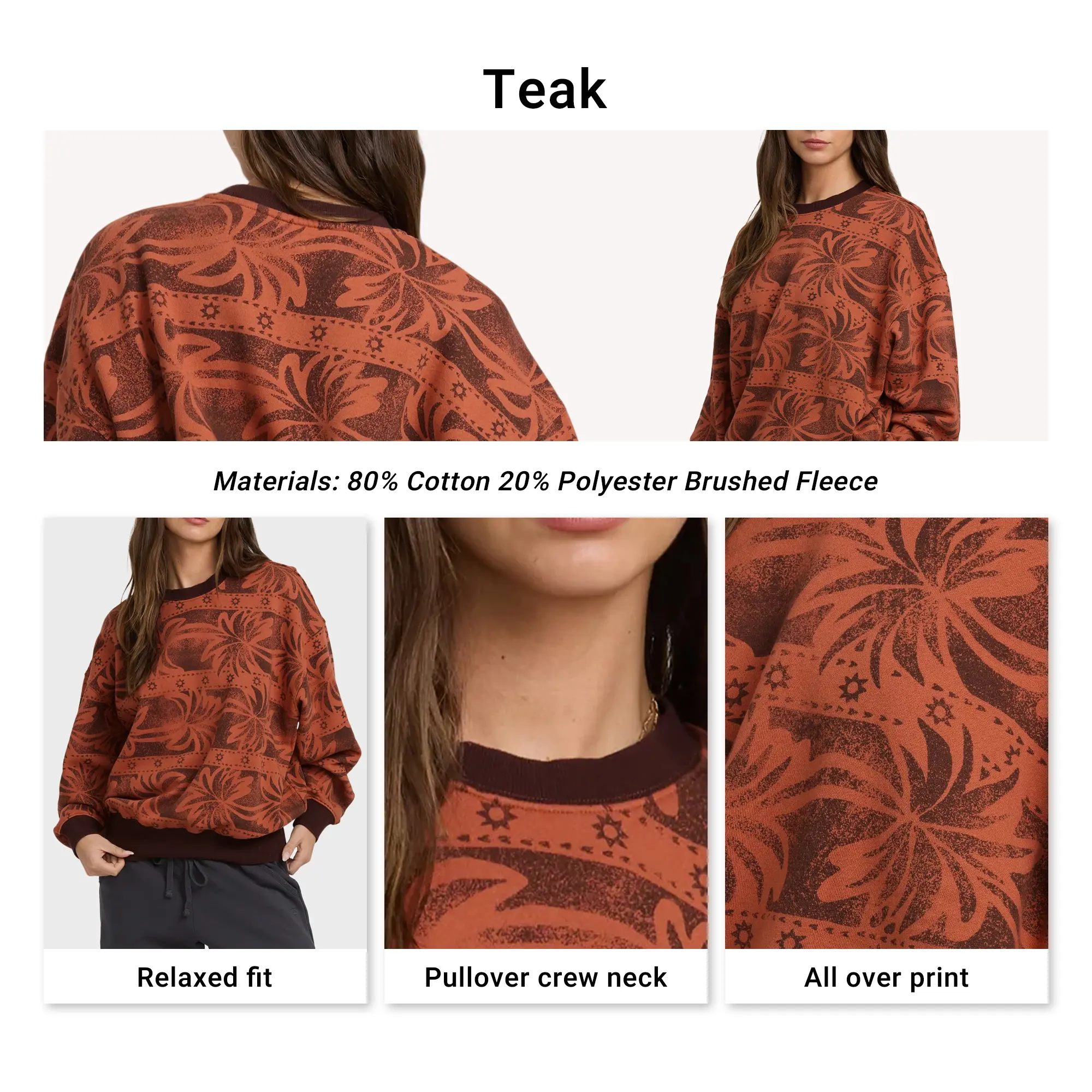 Cute!! it's a lovely burnt orange color, accurate to the picture. The material is nice and soft, it's a cotton polyester blend so the quality is pretty good. I'm 5'1 and the xs gives a comfy, relaxed fit.
