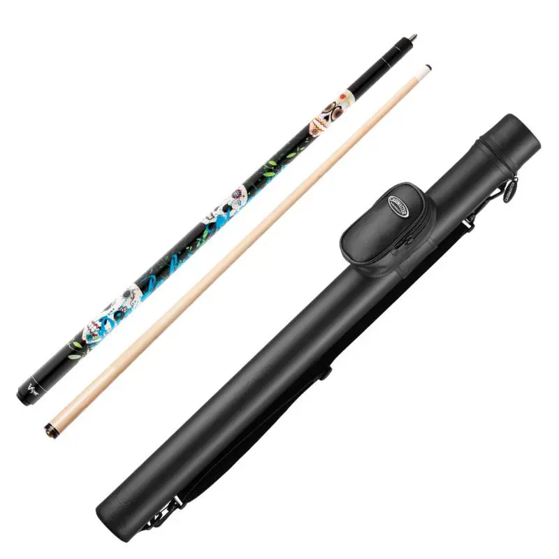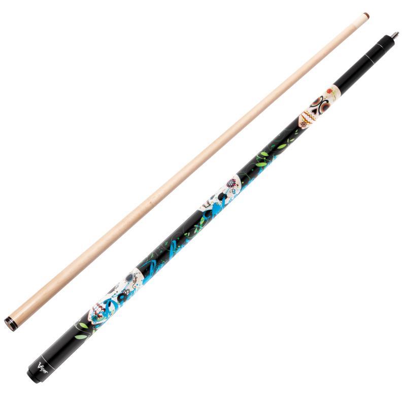 Elevate your billiard game in style with the Viper Underground Billiard Cue, featuring Día de los Muertos. This 58” solid maple cue is constructed with durability in mind. Have more control over your shots with a pro taper and Le Pro layered leather tip. Find the weight that best suits your game with adjustable weights. Included in this bundle is a heavy duty transport case that features a tough outer shell, and cushioned interior, to protect your cue against drops. The Q-Vault Supreme case also allows you to bring all of your pool accessories, like chalk and extra tips. Carrying your cue stick has never been easier!
