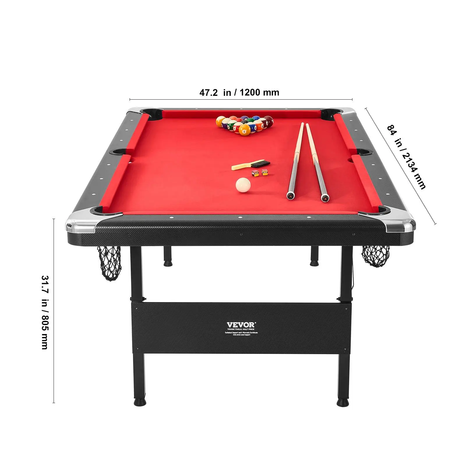 5. VEVOR Billiards Table, 7 ft Pool Table, Portable Foldable Space-Saving Table, Billiard Table Set Includes Balls, Cues, Chalks and Brush, Black with Red Cloth, Perfect for Family Game Room Kids Adults