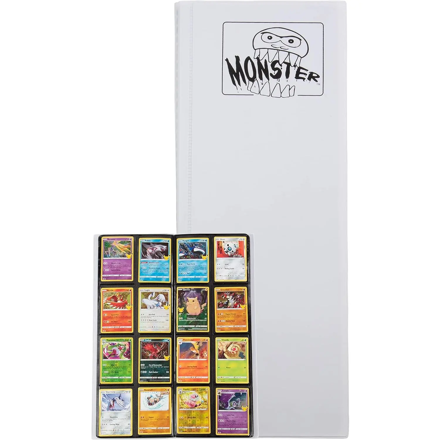 Monster Tower Binder -20 Side Loading Padded Pages that hold 320 cards -Compatible with Yugioh  Magic The Gathering & Pokemon -Unique Trading Card Album with 8 pocket(2 x 4)Configuration - Matte White