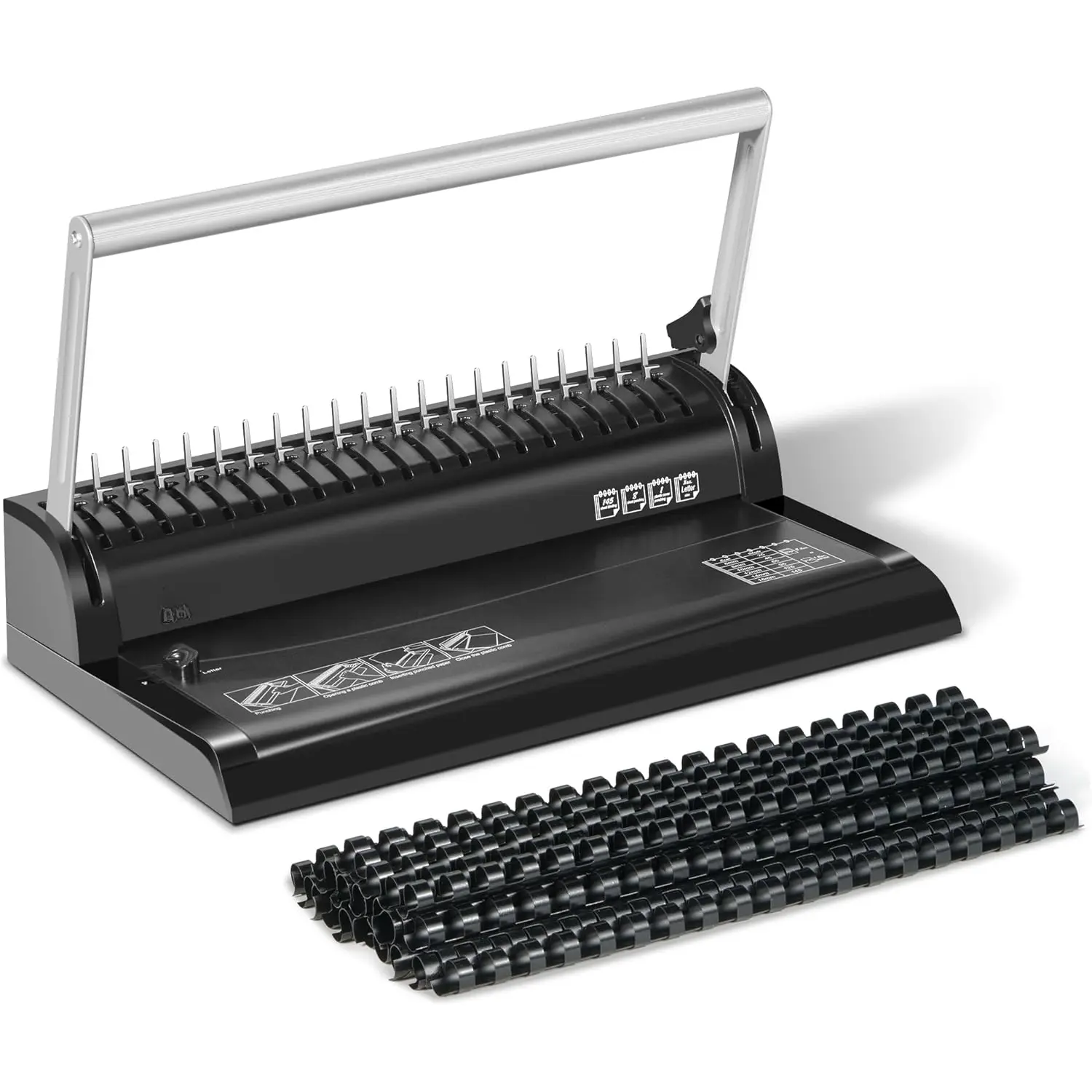 【Exceptional Value】Our binding machine comes with 1 box of 100 count of 1/2'' black PVC comb binding spines (for up to 90 sheets binding capacity).