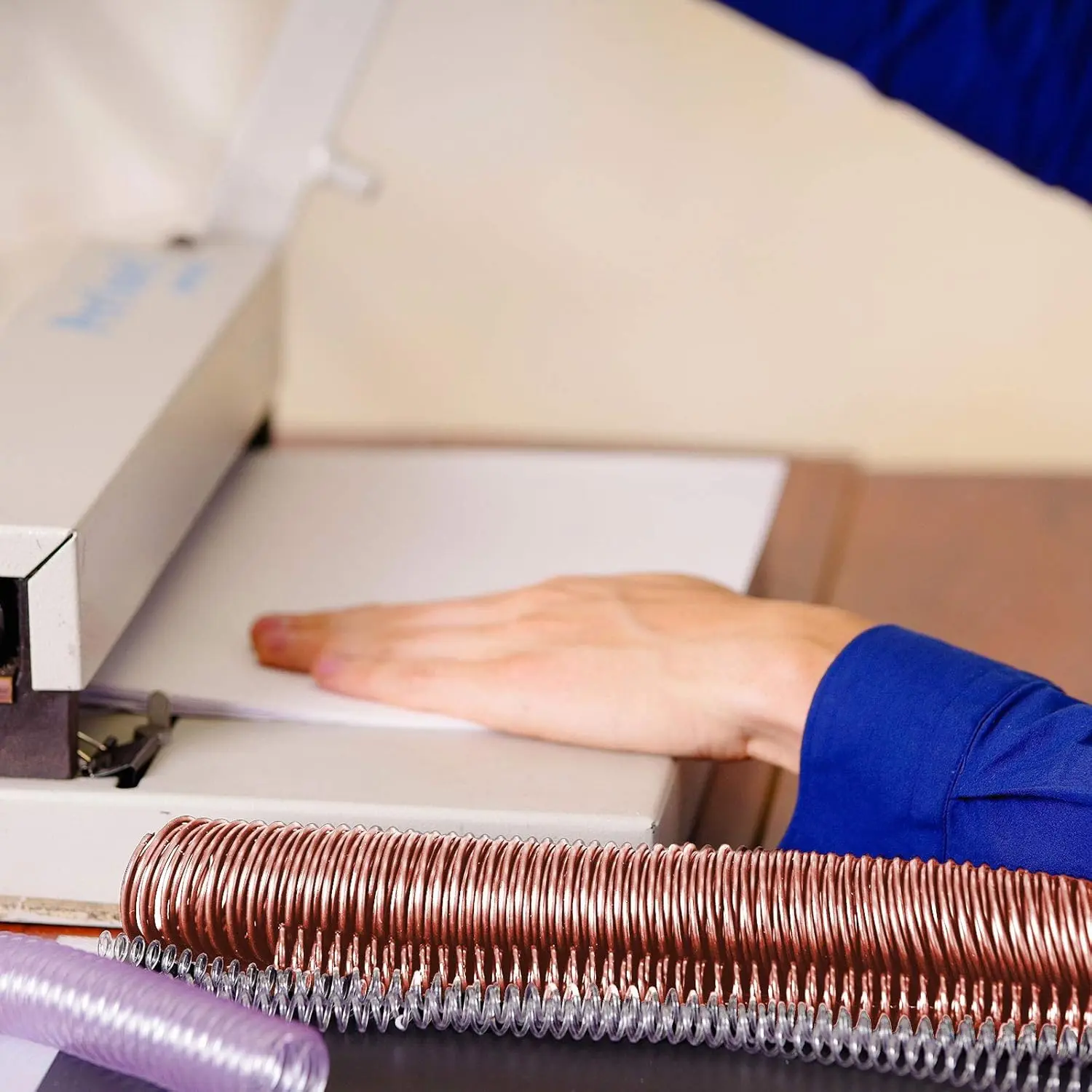 Simple ways to install: choose the right paper, punch out 23 holes at the proper distance, put the coil in the hole and pull the 2 sides of coil together with the help of external force, just a few steps to complete the installment