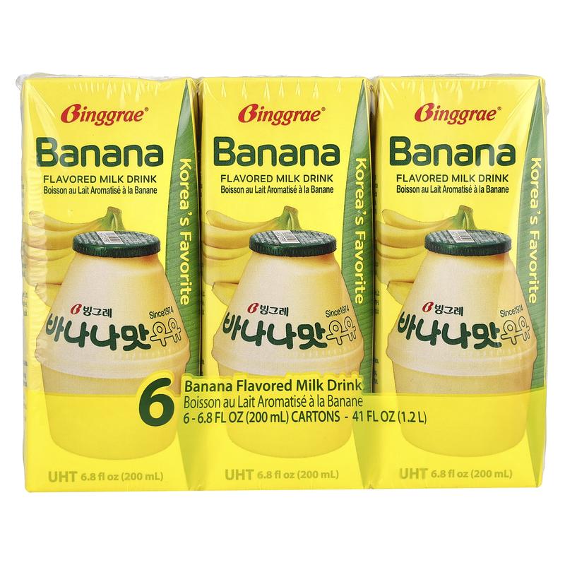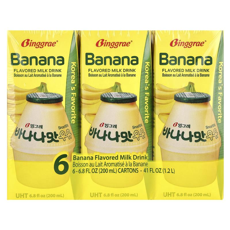 Binggrae Flavored Milk Drink, Banana, 6 Cartons, 6.8 fl oz (200 ml) Each