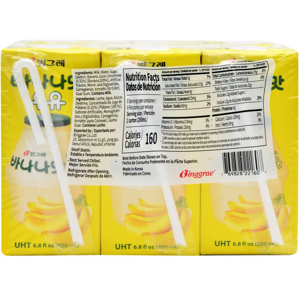 ·Ingredients: Milk, Water, Sugar, Dextrin, Banana Juice Concentrate (0.32%), Artificial Flavors, Mono & Diglycerides, Carrageenan, Annatto (for color), Guar Gum.