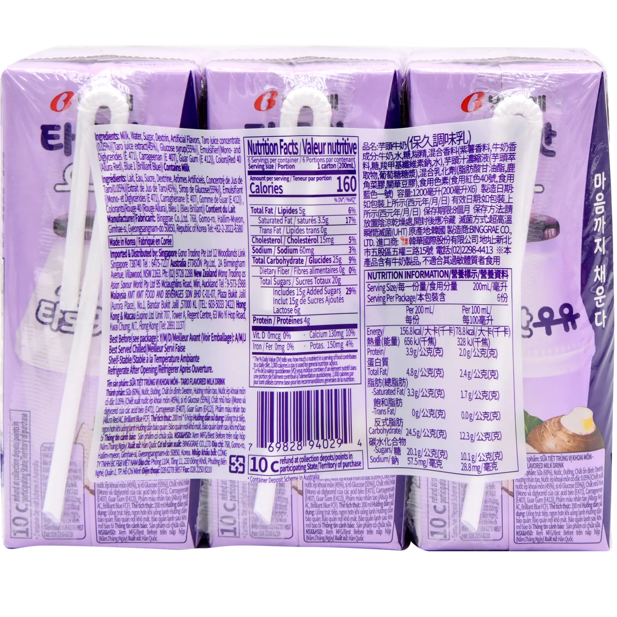 BINGGRAE Korean Assorted Flavored Milk offers a delightful assortment of Korea’s favorite flavors: Banana, Strawberry, Melon, Coffee, and Taro. Each 6.8 fl oz pack delivers a smooth, creamy texture and rich, sweet taste. Perfect for all ages, these milk drinks cater to every mood. Enjoy chilled for the best flavor experience.