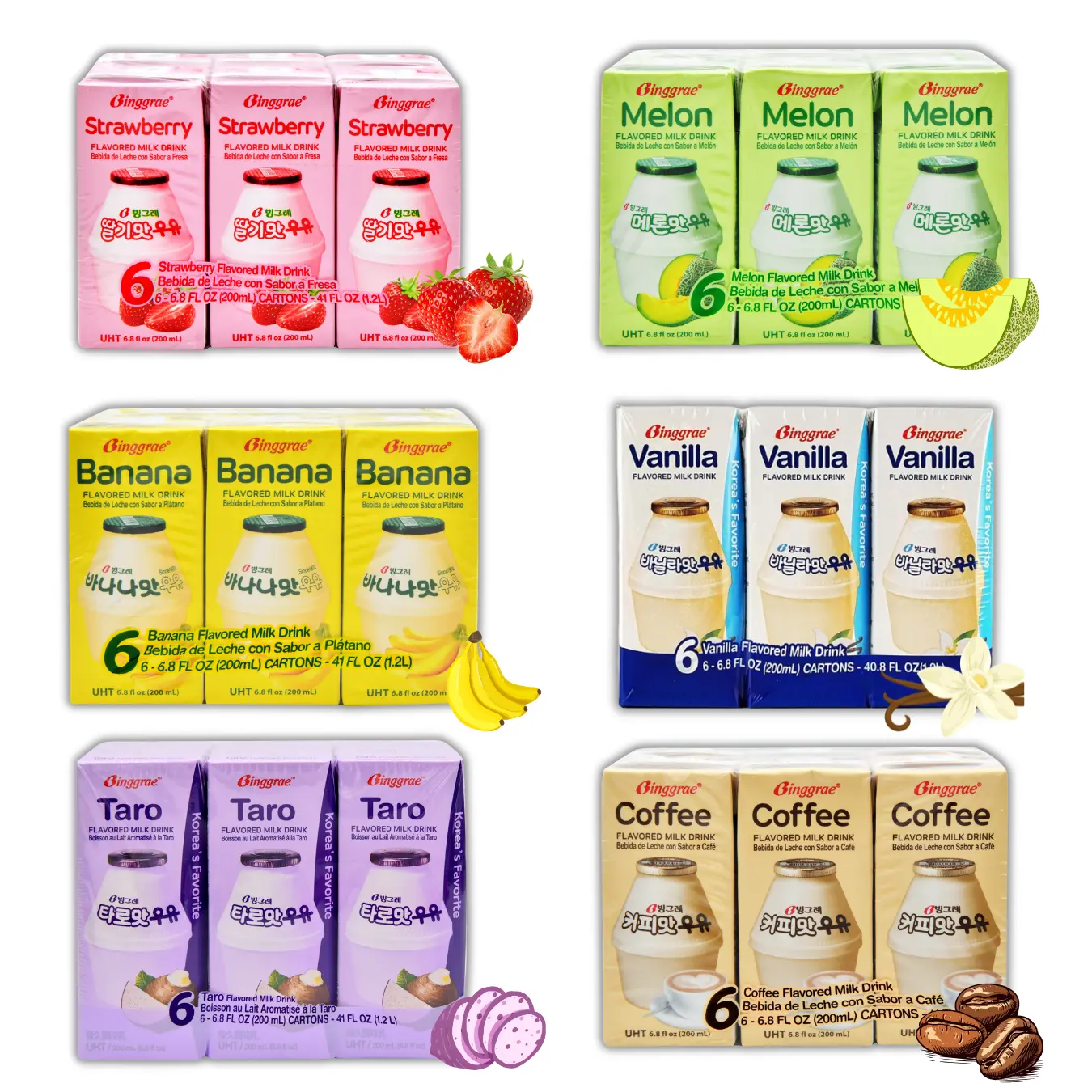 🍼 BINGGRAE Korean Assorted Flavored Milk - 6 Packs