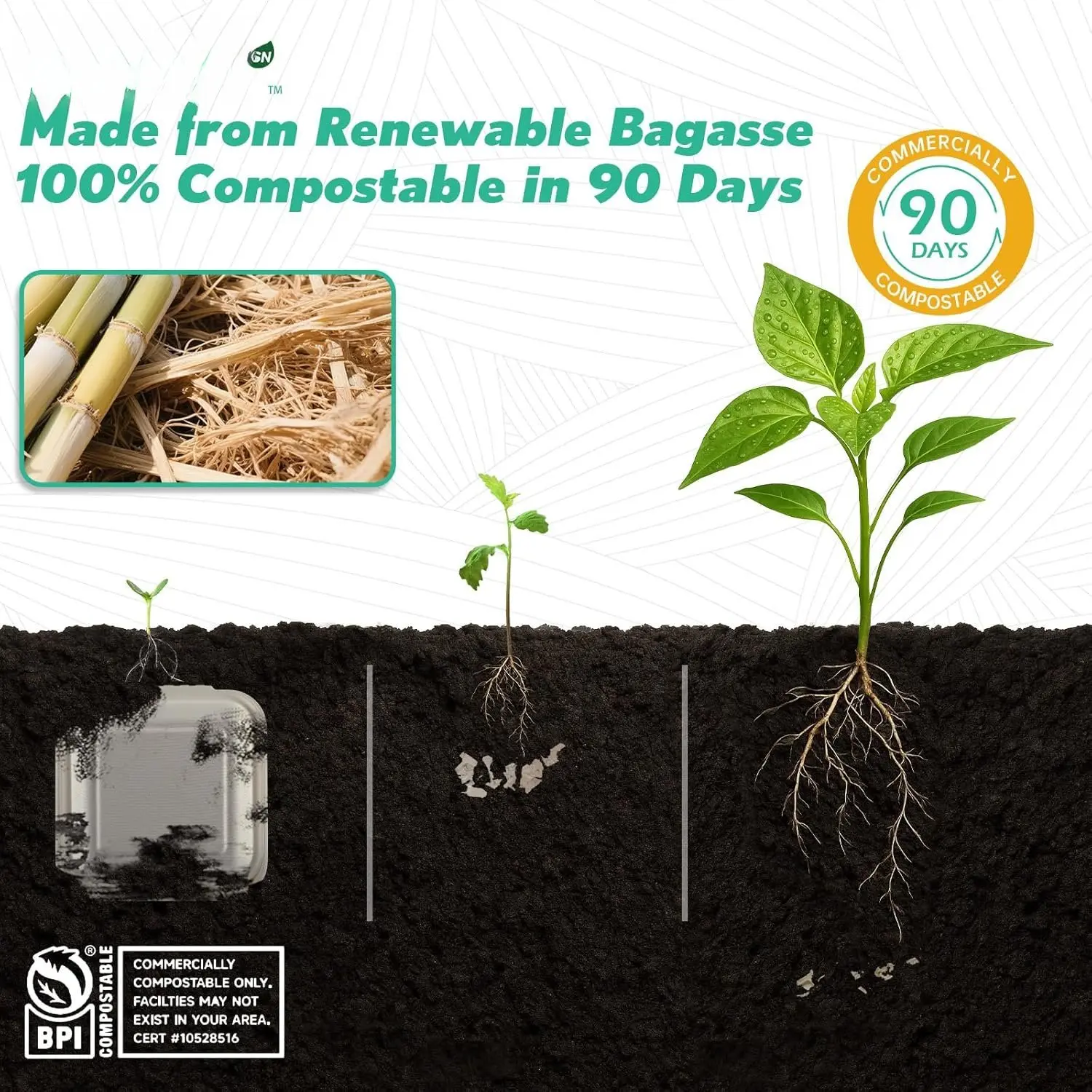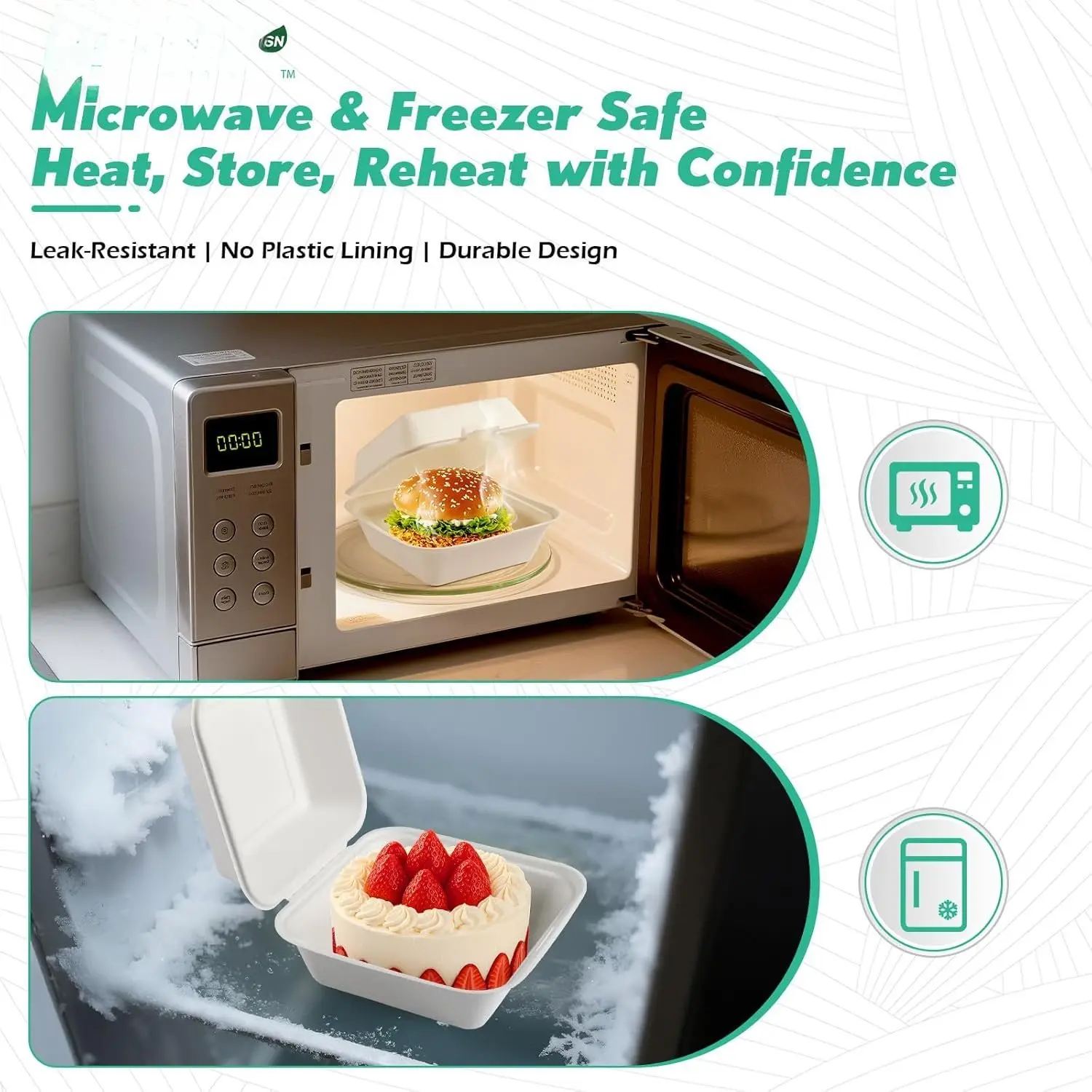 [6x6, 128-Pack Compostable Clamshell Take Out Containers, Biodegradable Bagasse Paper To-Go Boxes for Burgers, Sandwiches, Cake, , Microwave & Freezer Safe (White)