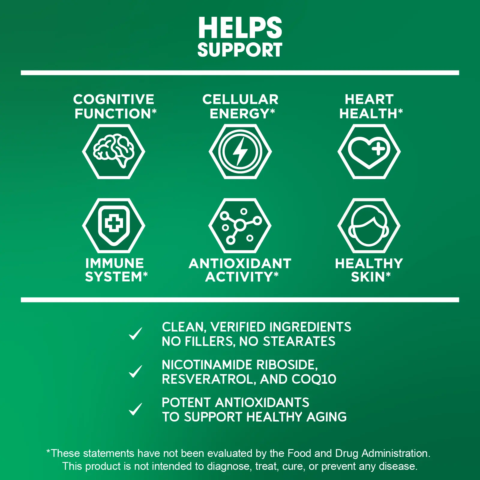 The synergy of Nicotinamide Riboside, CoQ10, and Resveratrol supports mental clarity, alertness, and cognitive health. Keep your mind at its best with this premium blend.