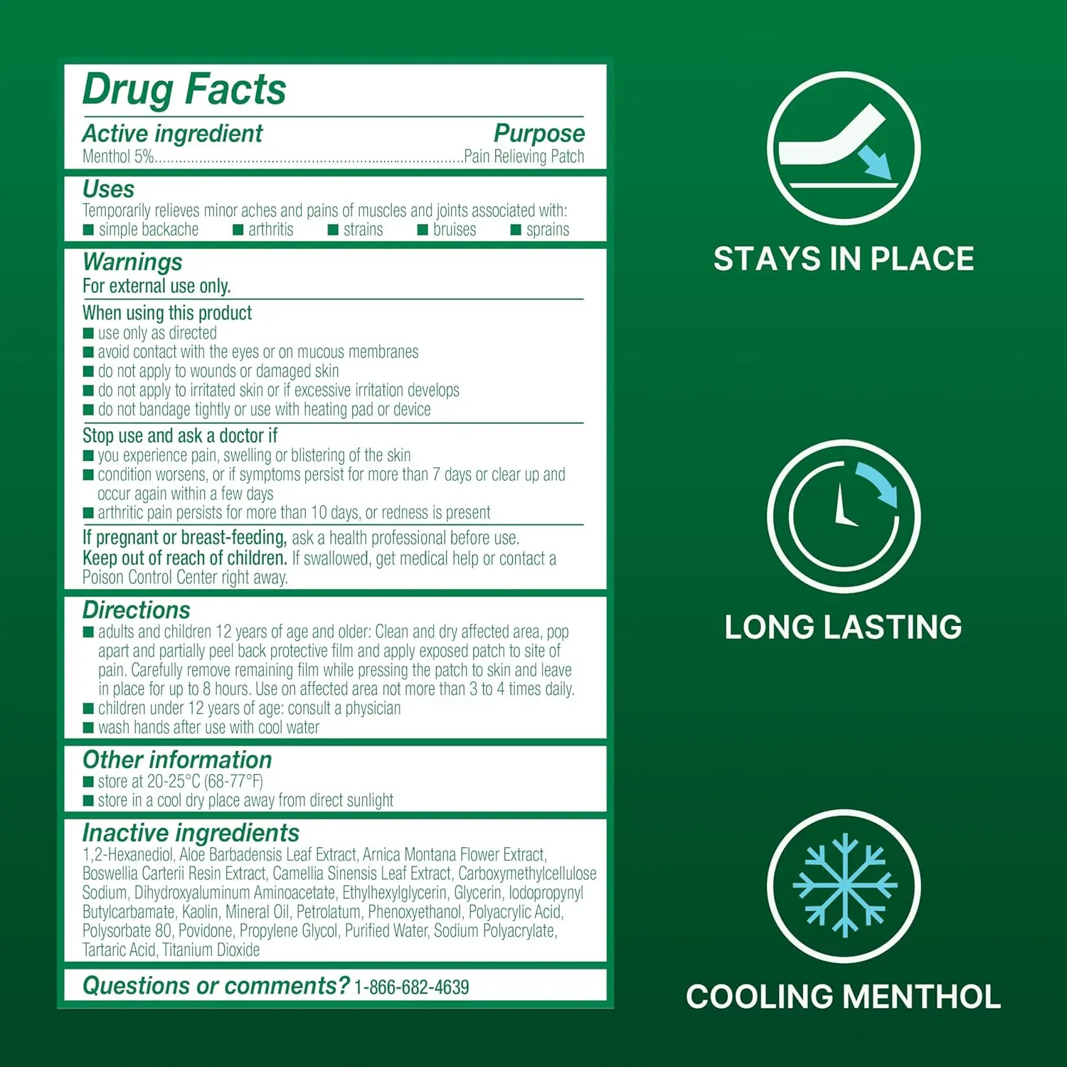 ·LOWER BACK PAIN RELIEF: Ideal for both athletes & everyday ache sufferers, our mess-free patches provide targeted menthol pain relief for simple backache; Also helps relieve soreness during muscle recovery