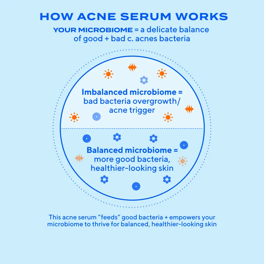 Apply 1-2 pumps of Biome-Balancing Clear & Prevent Acne Treatment Serum to face and neck; let dry completely before applying moisturizer, SPF, and/or makeup