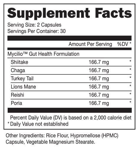 Enhance your overall wellness and gut health with Bucked Up Biome Boost capsules. This health supplement is packed with powerful mushrooms including Lions mane, Chaga, Reishi, Poria, Turkey Tail and Shiitake mushrooms.