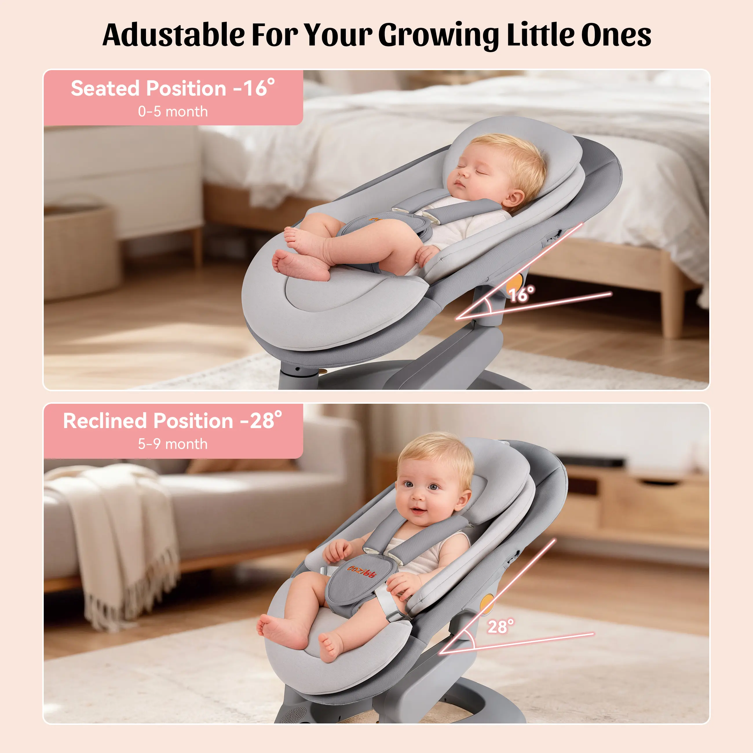 Dual-Mode Operation: The baby rocker features two tilt angles (16°, 28°), allowing for both sitting and reclining, ensuring a comfortable experience for newborns at different stages of development.