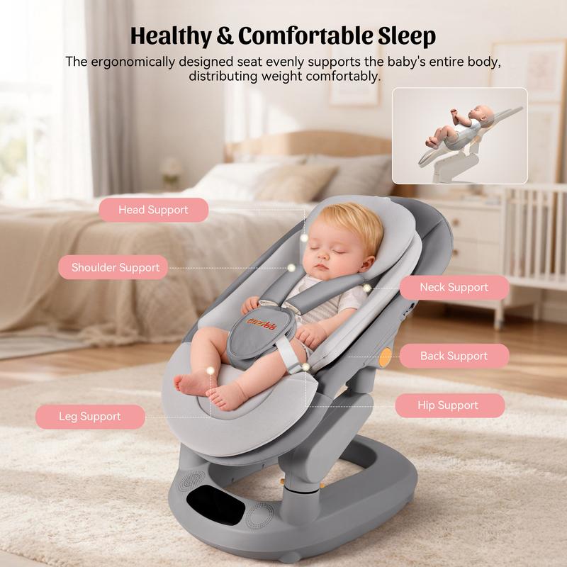 Motion Detection: Automatically activates the rocking function to soothe the baby when they become fussy.