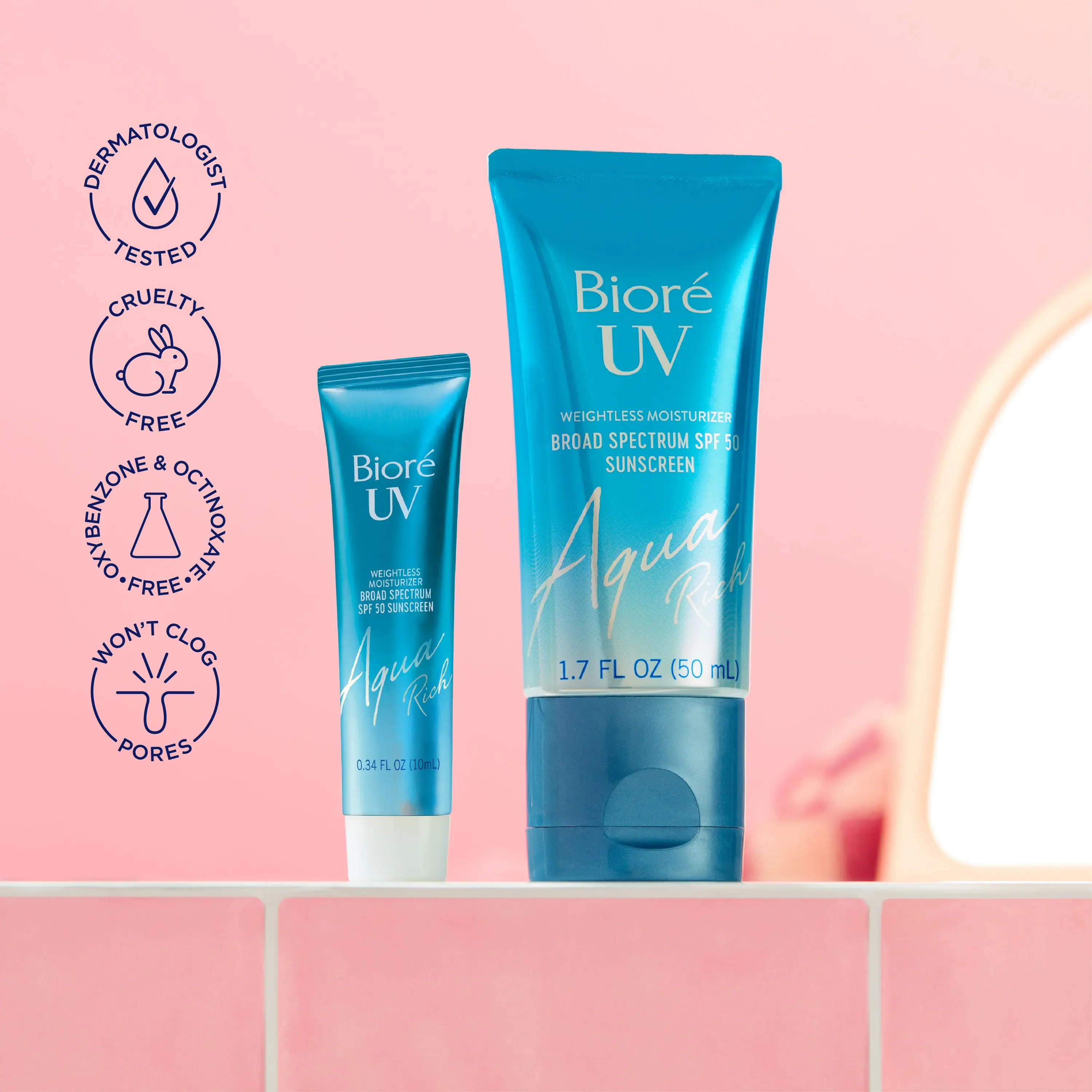 Protect and moisturize your face with Bioré UV Aqua Rich SPF 50 Moisturizer Sunscreen Travel-Size for the face, a 2024 Allure Best of Beauty award winner. Inspired by the Japanese sunscreen technology but modified to be USA compliant, this sunscreen moisturizer absorbs instantly into all skin tones with no white cast or greasy feel.
