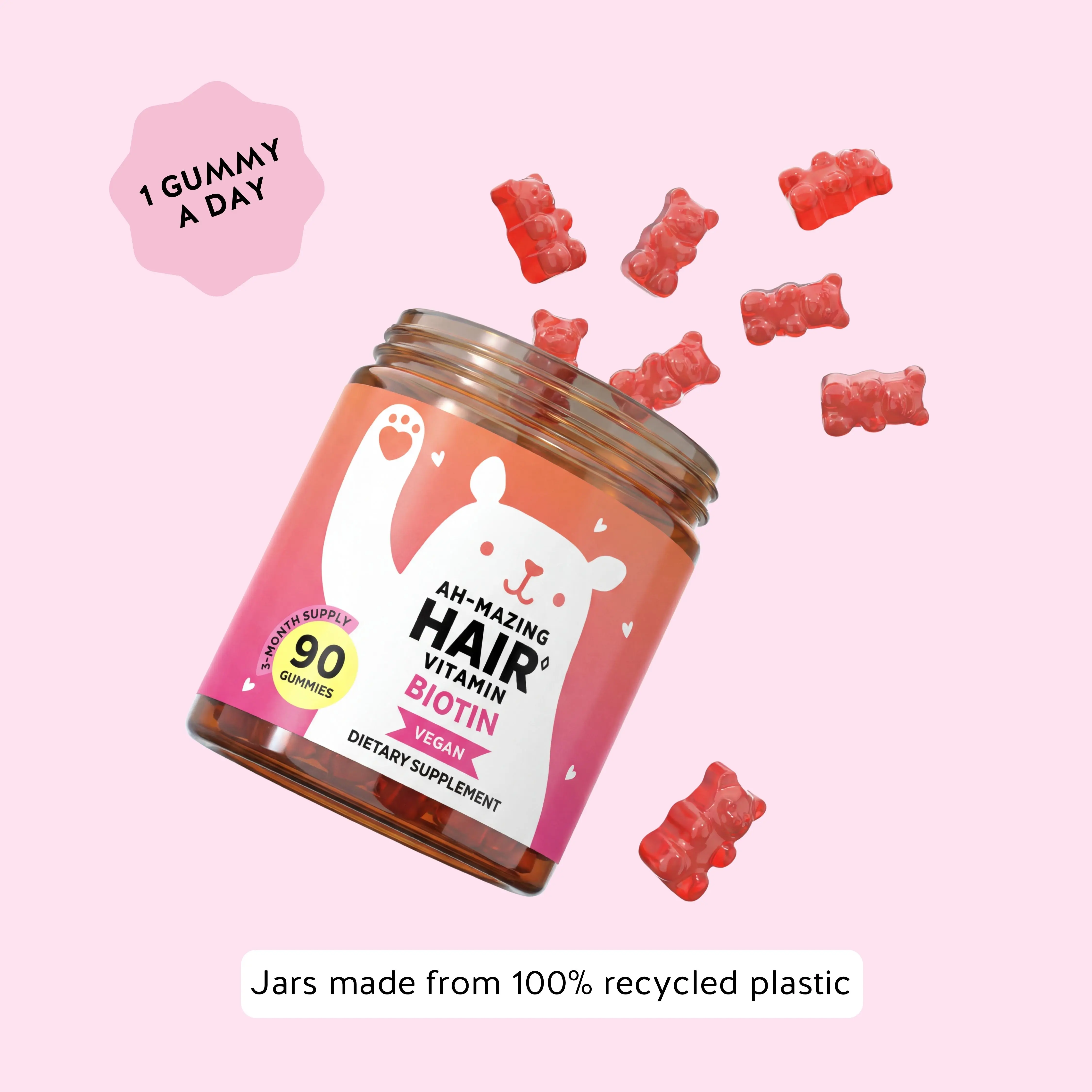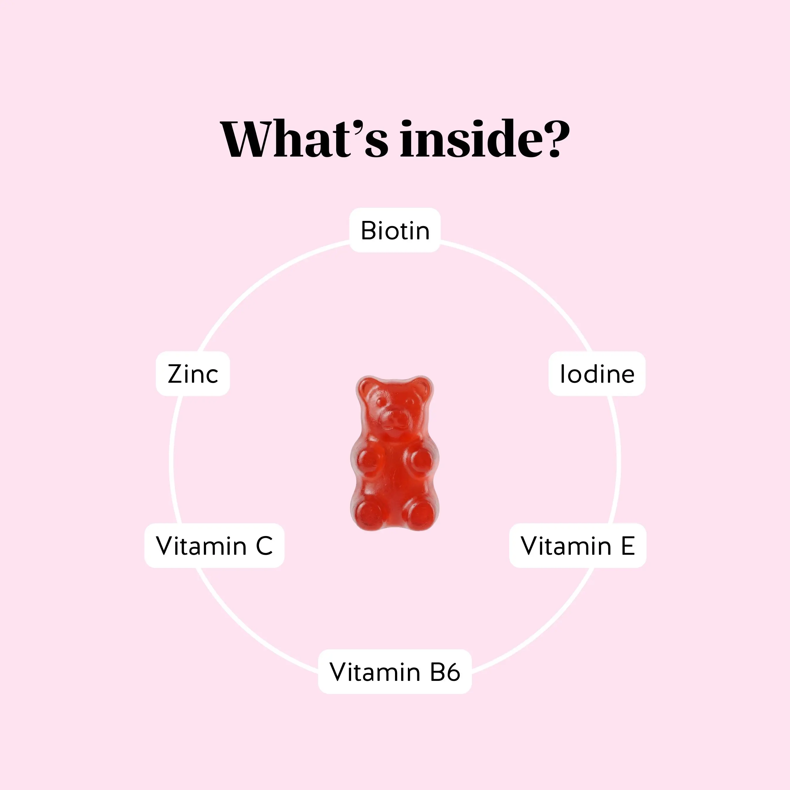 ·5,000 µg of biotin per gummy to support keratin production and promote strong, healthy hair.