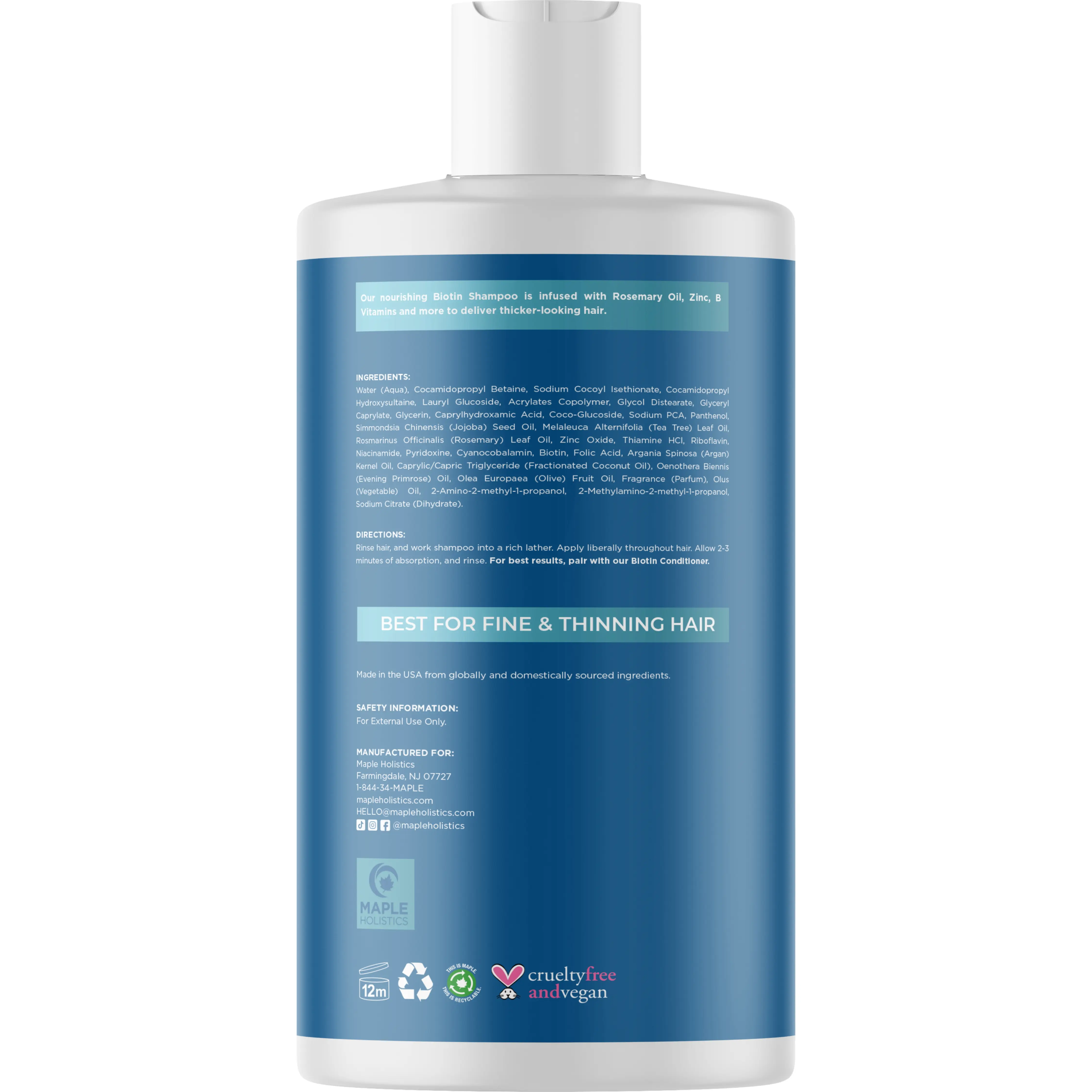 Maple Holistics biotin shampoo works well, giving hair better fullness. I’ve been using it for nearly a year.