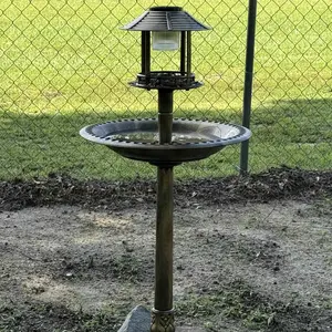 I love the bird bath. It’s beautiful and works perfectly. It was simple to put together, which I did in about 10 minutes ( without my husbands help ) ..The light is not quite as bright as I imagined and I don’t recommend putting bird seed in the tray. I did and the seeds ended up wet and it became a cakey, messy ant magnet. Over all, I have no buyers regret and would recommend the product.