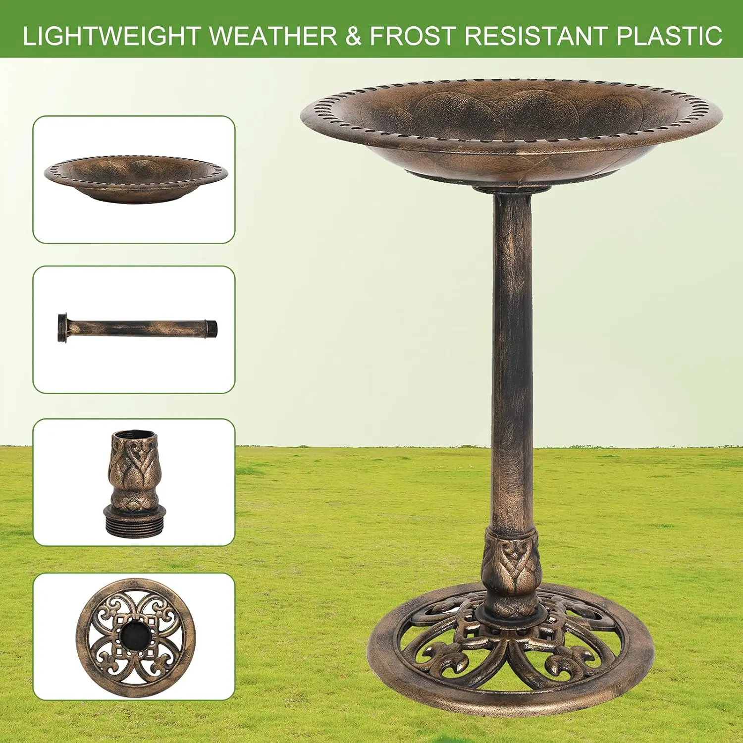 VINGLI Pedestal Bird Bath 28 Inch Antique Copper Resin Birdbaths Weather Resistant Floral Accents and Vintage Finish Garden Decor for Outdoor Lightweight Courtyard…VINGLI Pedestal Bird Bath 28 Inch Antique Copper Resin Birdbaths Weather Resistant Floral Accents and Vintage Finish Garden Decor for Outdoor Lightweight Courtyard…VINGLI Pedestal Bird Bath 28 Inch Antique Copper Resin Birdbaths Weather Resistant Floral Accents and Vintage Finish Garden Decor for Outdoor Lightweight Courtyard…VINGLI Pedestal Bird Bath 28 Inch Antique Copper Resin Birdbaths Weather Resistant Floral Accents and Vintage Finish Garden Decor for Outdoor Lightweight Courtyard…