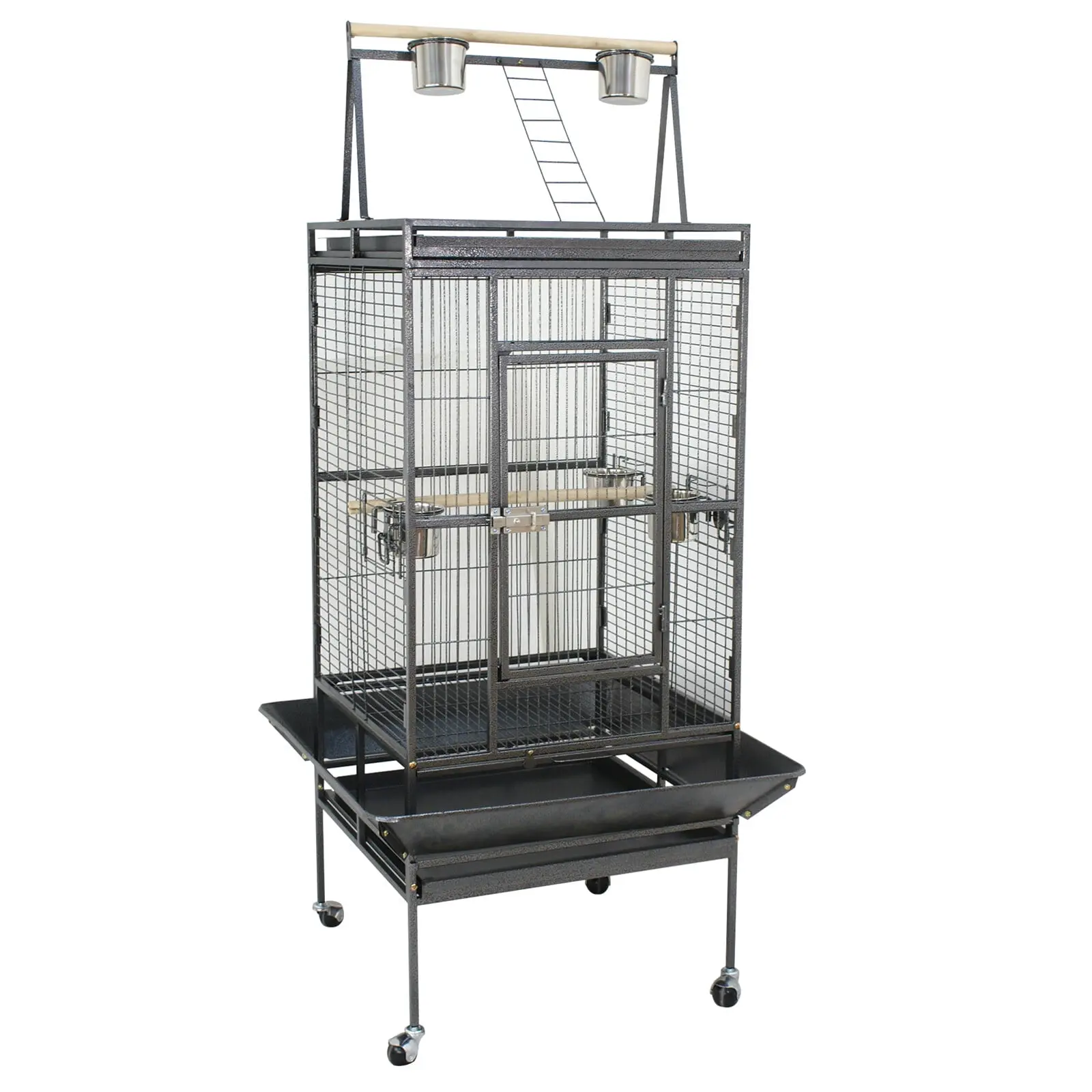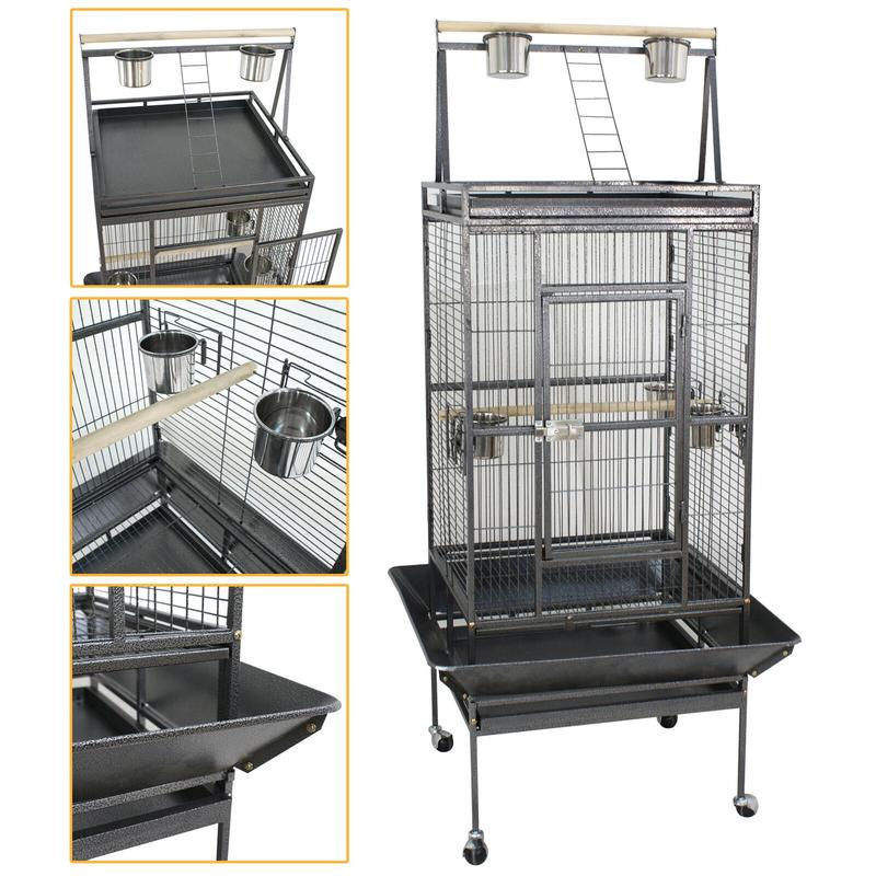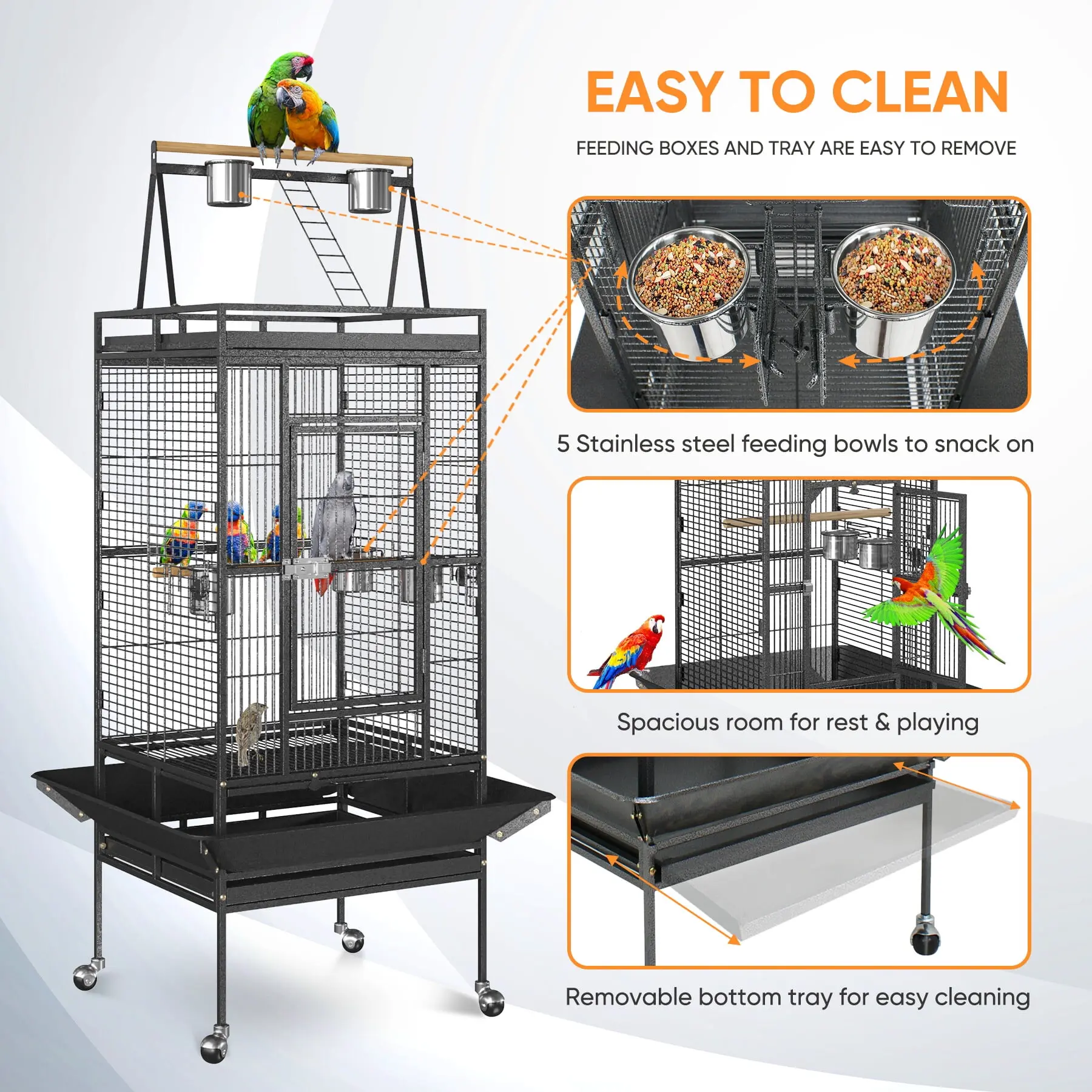 Sturdy Construction: This Parrot Cage features a robust wrought metal frame with a non-toxic, powder-coated finish for safety and durability. Its solid construction withstands weather and bird bites without deforming.