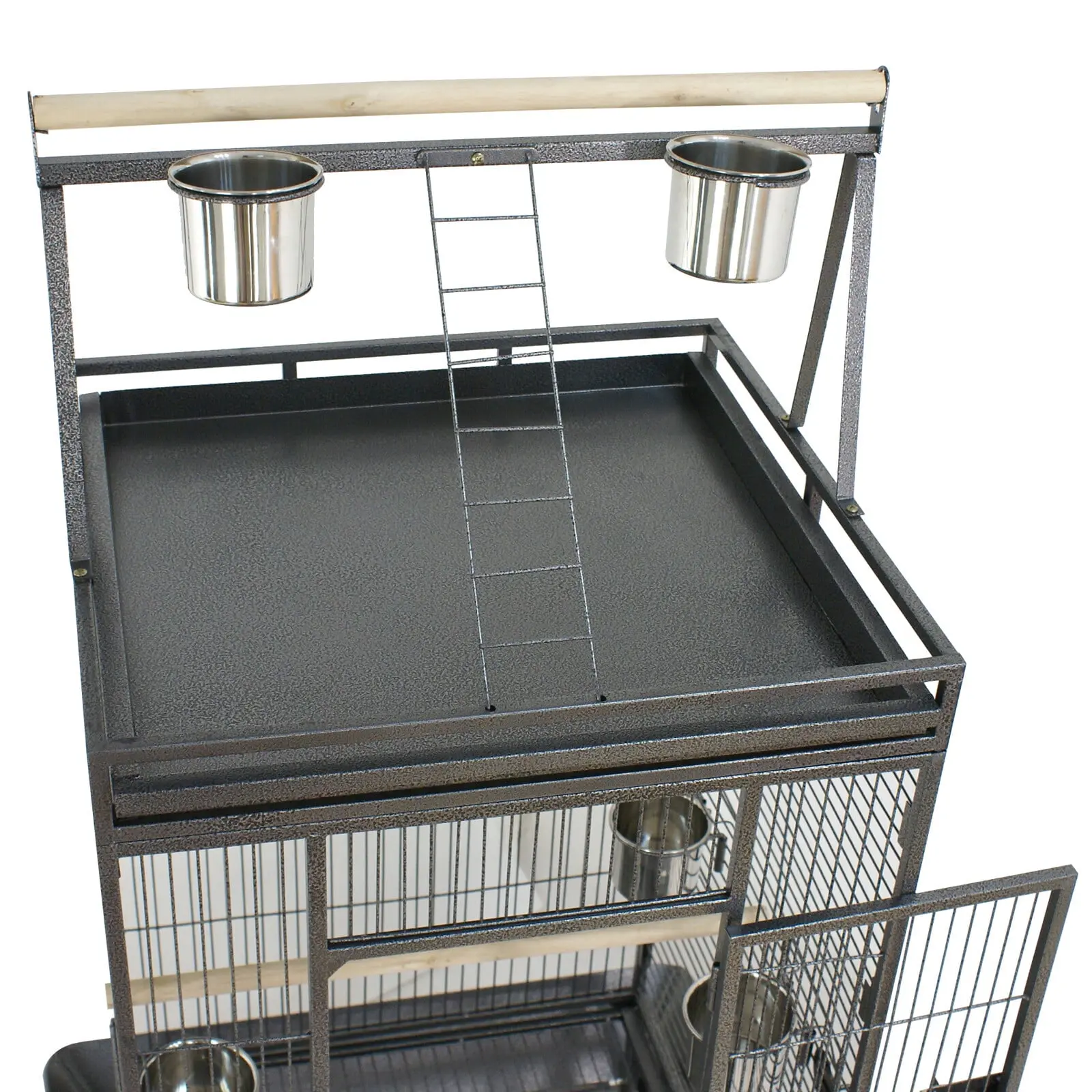 A Playground on Top: The ladder and the wooden perch on the cage roof give your feathered friends a comfortable place to relax, stretch their wings, or train