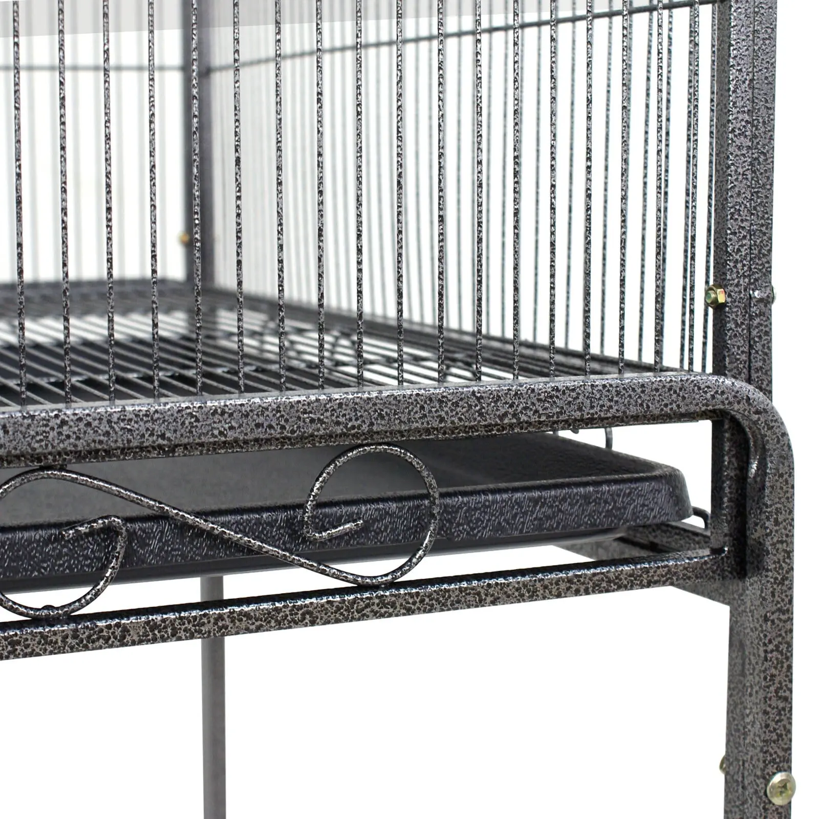 Easy to Clean & Install: The cage has a slide-out metal grate and tray for easy cleaning and waste removal. Mesh panels above the tray keep birds from walking or lying on it. Assembly instructions are provided.