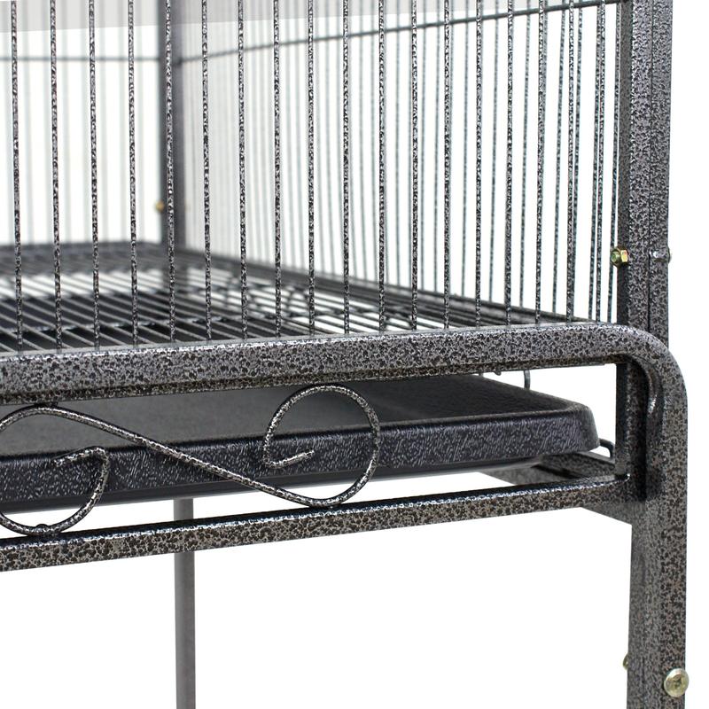 ·Rolling wheels - This bird cage is equipped with 4 feeder doors, each with locks, for secure and easy access to feeding. It sits on a stand that elevates it to a comfortable height and is fitted with four wheels for effortless mobility.