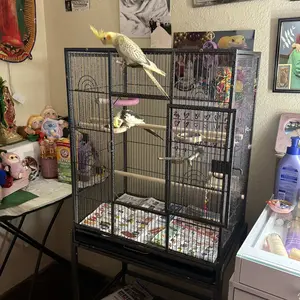 ·Safe & Sturdy Construction - This Bird Cage is crafted from durable wrought iron and features a powder-coated finish, ensuring it's both sturdy and non-toxic, with lead-free paint for your bird's safety.