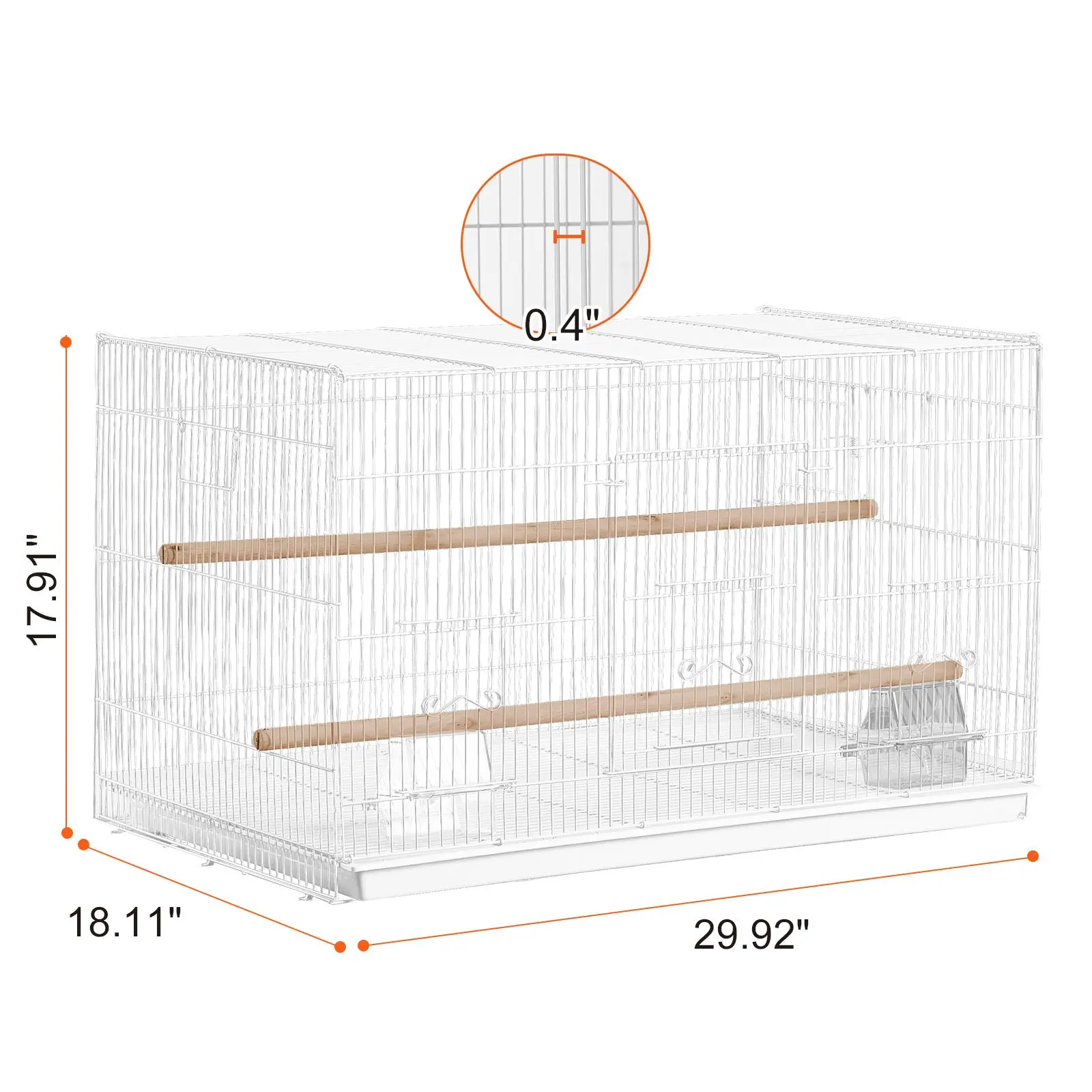 • Spacious Space: Measuring 760 x 460 x 455 mm / 30" L x 18" W x 18" H, this bird cage with 0.4 inches grid spacing, allows birds to fly freely.