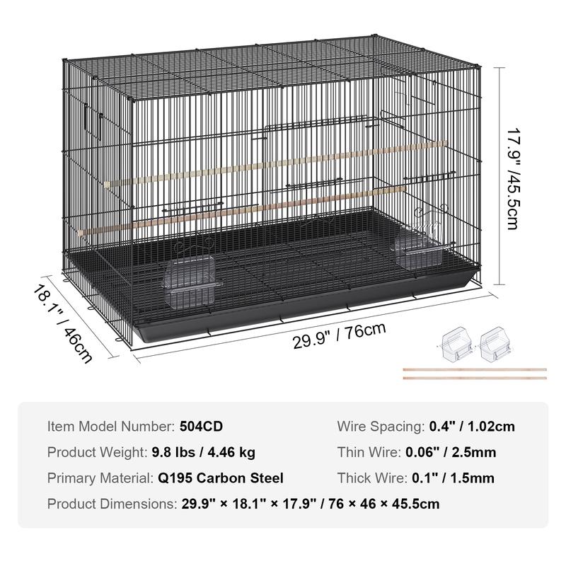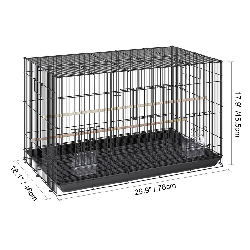 • Ample Space: Measuring 29.9"L x 18.1"W x 17.9"H, with a 0.4'' grid spacing, this bird flight cage offers a roomy, comfortable living space for your pet birds to move freely, rest, and stretch their wings. Allow them to enjoy free and comfortable movement within a limited area.