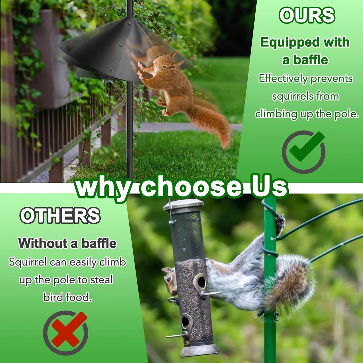 ·[Anti-Squirrel Design]The bird house pole is equipped with a squirrel baffle, thickened plastic material, smooth surface, and large enough to effectively prevent squirrels or other small wild animals from entering the bird feeder, which helps Make sure food is available exclusively for birds and providing birds with a safe place to rest.