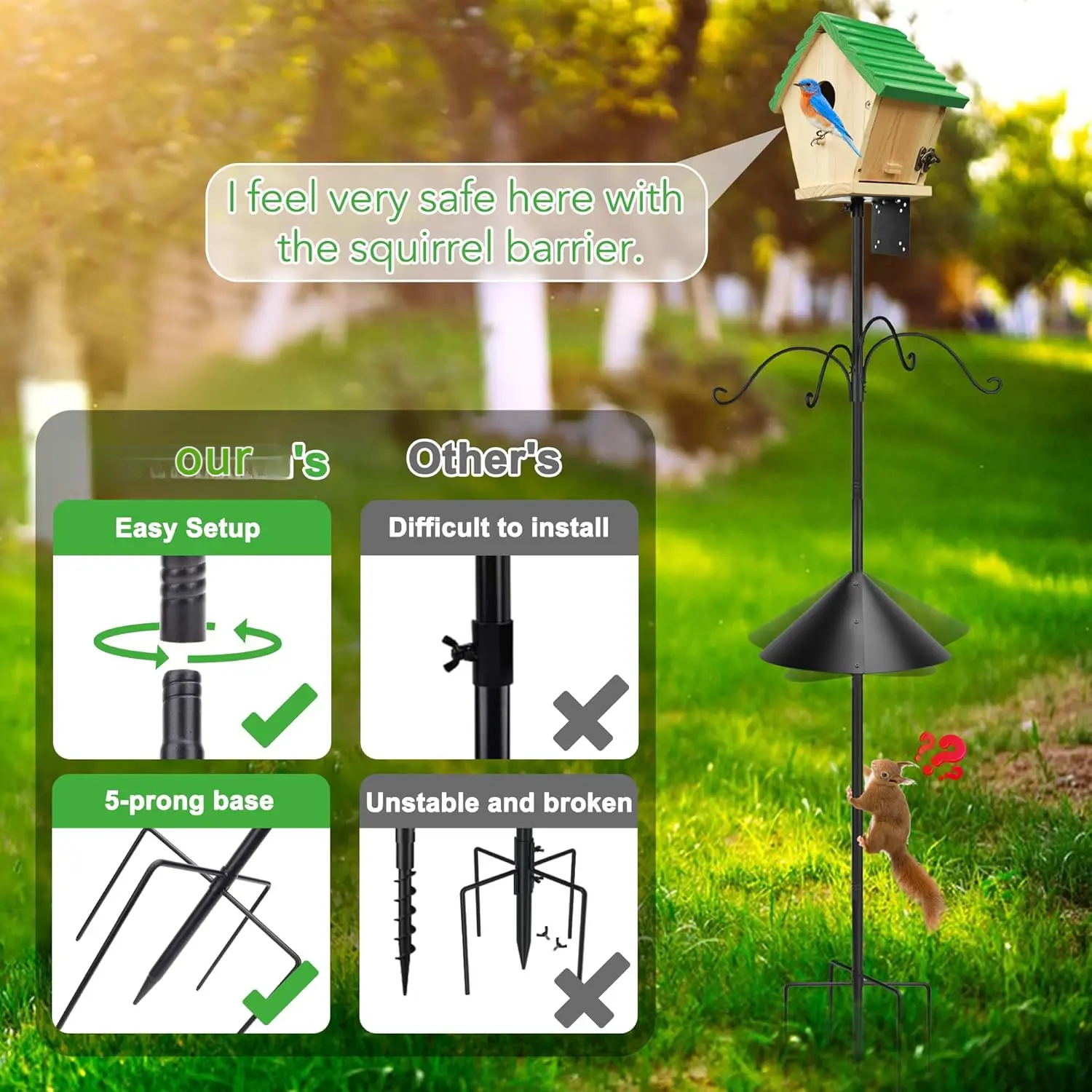 ·[Multi-Bird Feeder Stand Pole] Our bird house pole squirrel proof mount kit is can be used in the backyard, garden, patio, lawn, forest, or any other outdoor area. Protecting and caring for wild birds is what we should do to protect nature. It's not only a gift for bird lover, but also a gift for wild birds.