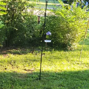 EASY ASSEMBLY: Threaded tubes come together while a set of wingnuts secure additional hooks or feeder stations before staking the pole into the ground