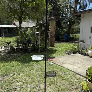 Includes: Feeder frame (poles, hooks), Water bowl, Mesh tray Tube feeder, Suet feeder
