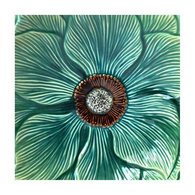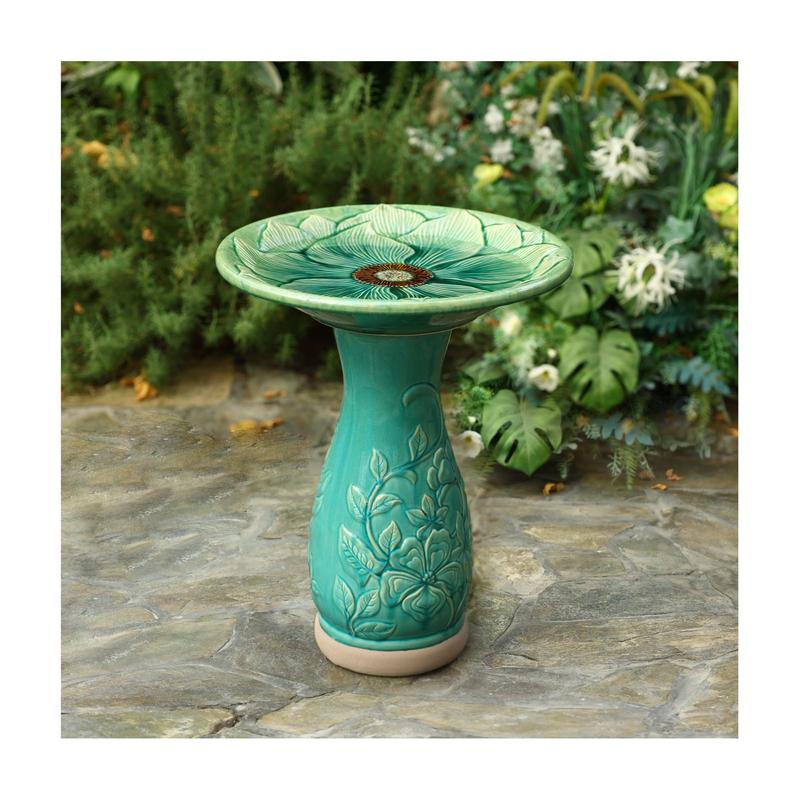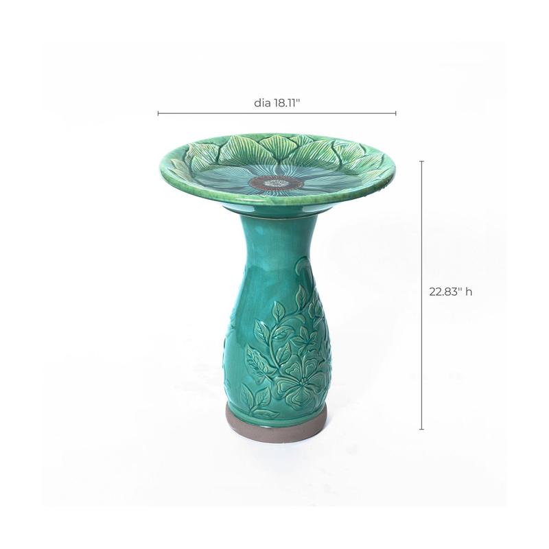 LuxenHome Aqua Glazed Flower Ceramic 22"H Birdbath