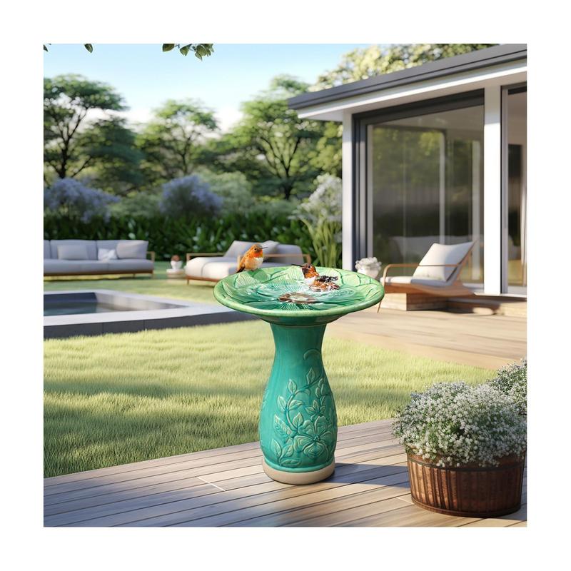 Transform your outdoor space into a serene oasis with the LuxenHome flower birdbath. Its aqua-glazed ceramic design is adorned with a beautifully detailed flower design, creating a vibrant focal point that invites nature right into your garden. Perfect for any garden, courtyard, or balcony, this birdbath not only serves as a refreshing spot for birds but also enhances your outdoor decor with its unique artistic charm. From LuxenHome.