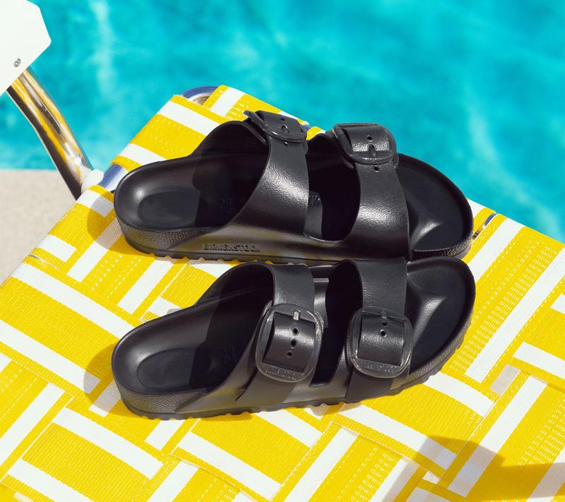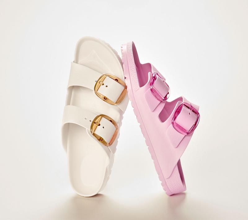 This is gonna be BIG. Oversized buckles bring a fresh look to a classic Birkenstock silhouette in these EVA sandals. With a foot-cradling contoured footbed and playful textured outsole for grip, they're the pair to wear on both sand and street. From Birkenstock.