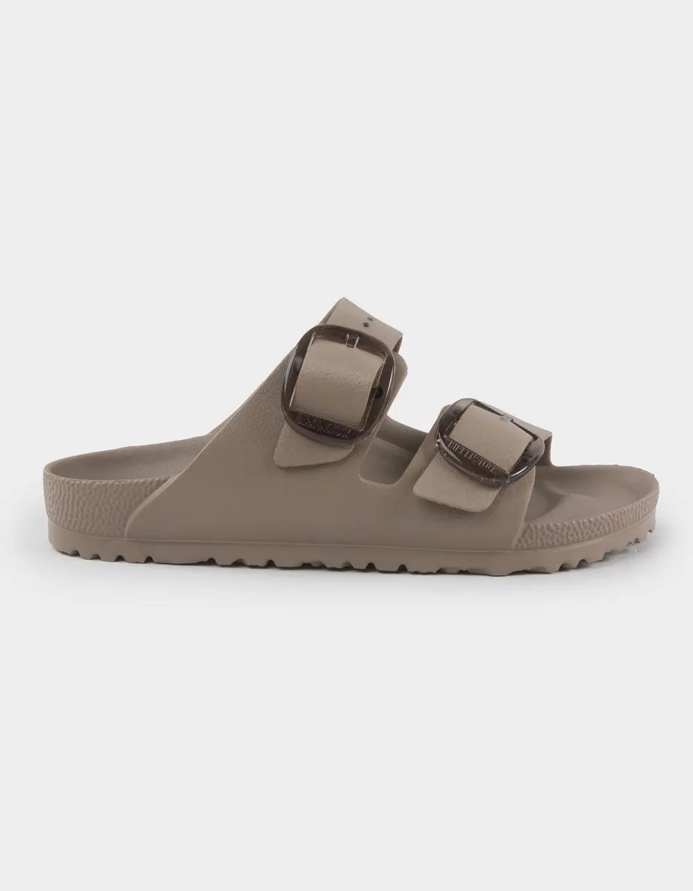 Birkenstock Arizona EVA Big Buckle Sandals. The BIRKENSTOCK Arizona is a genuine classic. Modeled on the cork sandal, this version is made from EVA. The high-quality, odor-neutral EVA has been tested for harmful substances and combines numerous positive attributes: it is very light, highly elastic, water-resistant, and skin-friendly and offers the comfort you have come to expect from BIRKENSTOCK. This version features Birkenstock's popular Big Buckle made from a stainless synthetic material and makes an impression with its durability and minimalist design. Anatomically shaped Birkenstock footbed made from EVA. Water-resistant. Washable. Ultra lightweight. Imported.