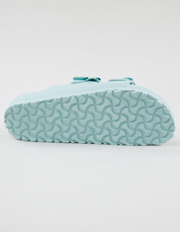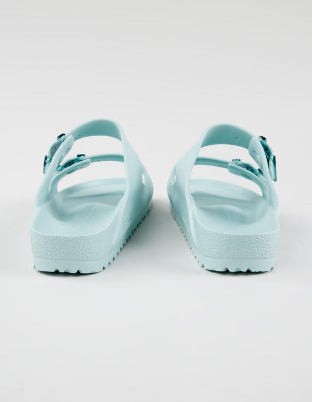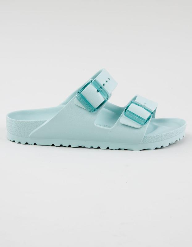 Birkenstock Arizona Stealth Buckle EVA Sandals. Birkenstock's best-selling sandal in an ultra-lightweight style. The Arizona Essentials sandal is made from water-friendly material, giving you a flexible design built on the contoured footbed you love most. With translucent buckles, it's the perfect throw-and-go style for everything from the pool to post-workout. Contoured footbed for legendary Birkenstock support. Made from water-friendly EVA. Lightweight & flexible. Two straps with translucent pin buckles. Imported.