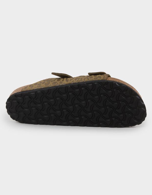 Birkenstock Arizona Sandals. Bold by nature, timeless by design. The Arizona sandal in a subtle leopard print and classic hardware. Designed on a contoured footbed, feels comfortable in every spot. Contoured cork-latex footbed creates custom support with wear. Leopard-printed synthetic material. Suede footbed lining helps keep you comfortable. Flexible EVA sole. Two adjustable straps with metal pin buckles. Imported.