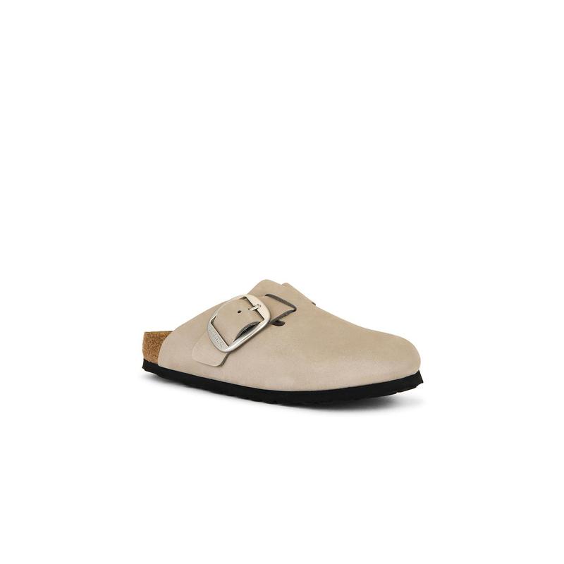 BIRKENSTOCK Boston Big Buckle Clog in Stone Coin Nubuck