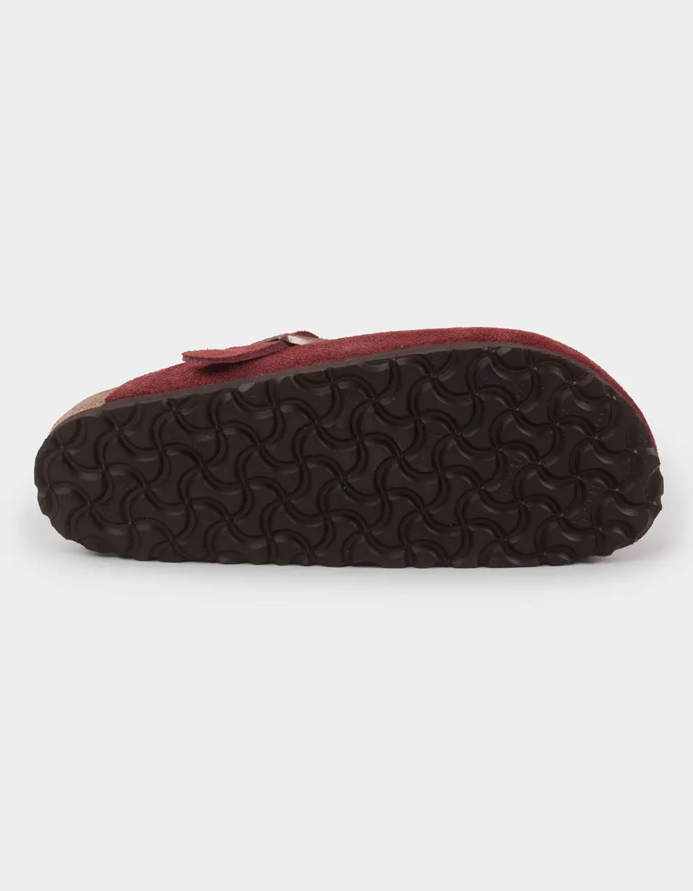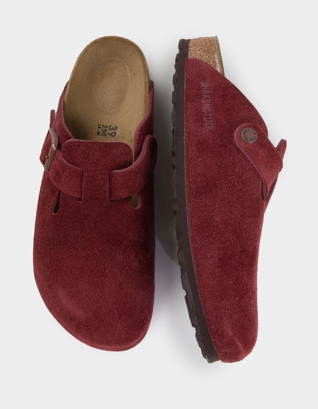 Birkenstock Boston Clogs. So classic and consistently comfortable, the Boston clog has become a coveted, year-round favorite. Soft suede lends an effortless feel to the style, with a geometric print on the footbed liner for a surprise pop. Complete with an original contoured footbed that'll feel uniquely yours wherever you wear it. Contoured footbed for legendary BIRKENSTOCK® support. Classic suede upper. Printed microfiber footbed lining. EVA sole is flexible and lightweight. Adjustable strap with metal pin buckle. Imported.