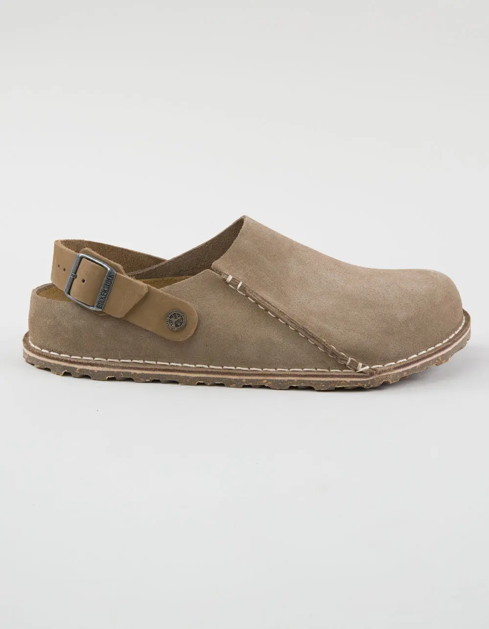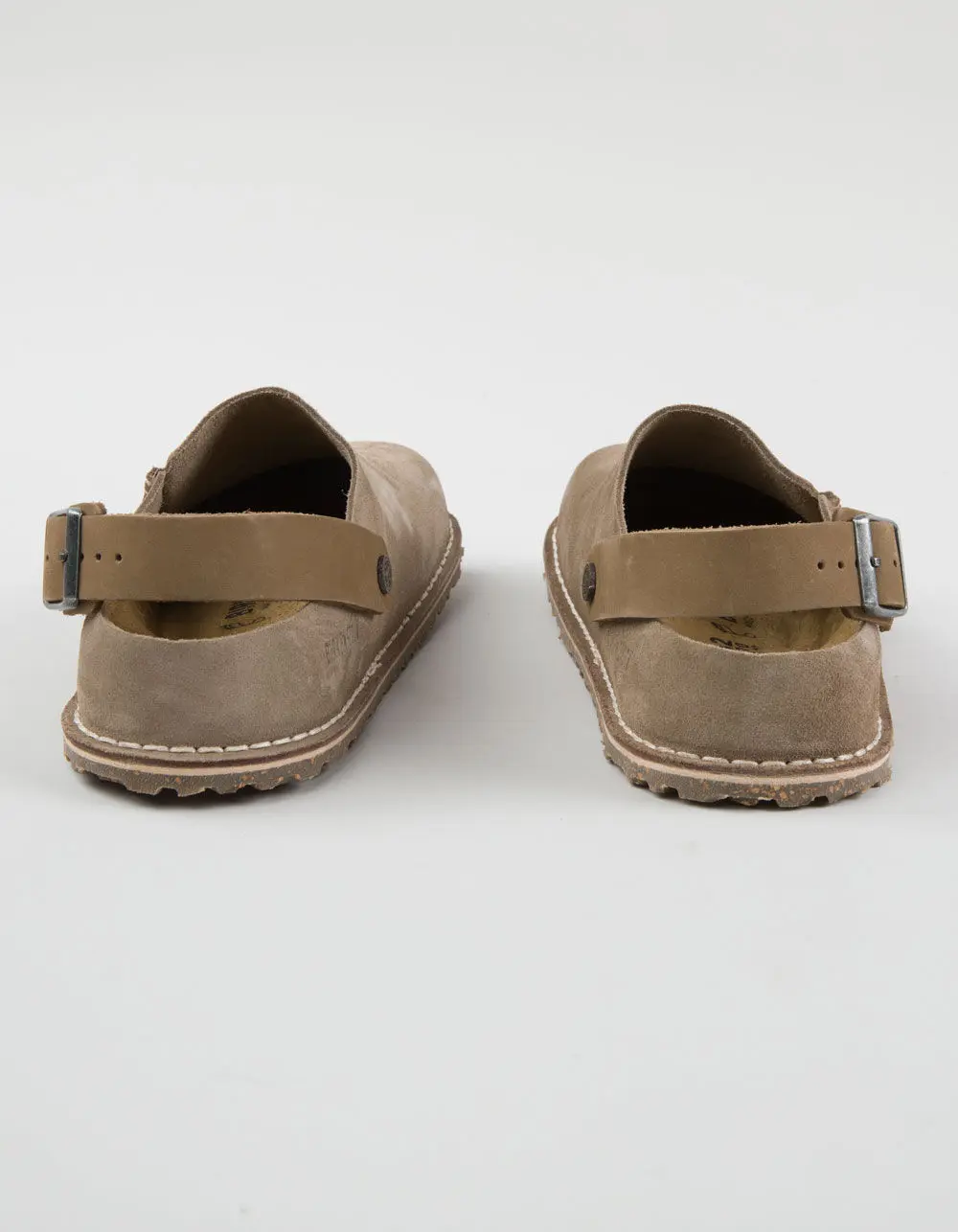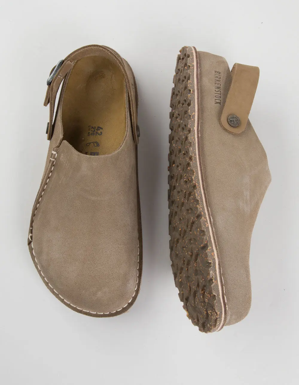 Birkenstock Lutry Premium Suede Clogs. Thoughtfully designed to give you two ways to wear, the Lutry clog is endlessly versatile. A convertible backstrap gives you added security when you need it, and flips up when you want a more relaxed look. It's all grounded in our original contoured footbed for the ultimate support. Contoured cork-latex footbed creates custom support with wear. Classic suede upper. Suede footbed lining helps keep you comfortable. Grippy rubber cork blend sole. Convertible backstrap with adjustable metal pin buckle. Imported.