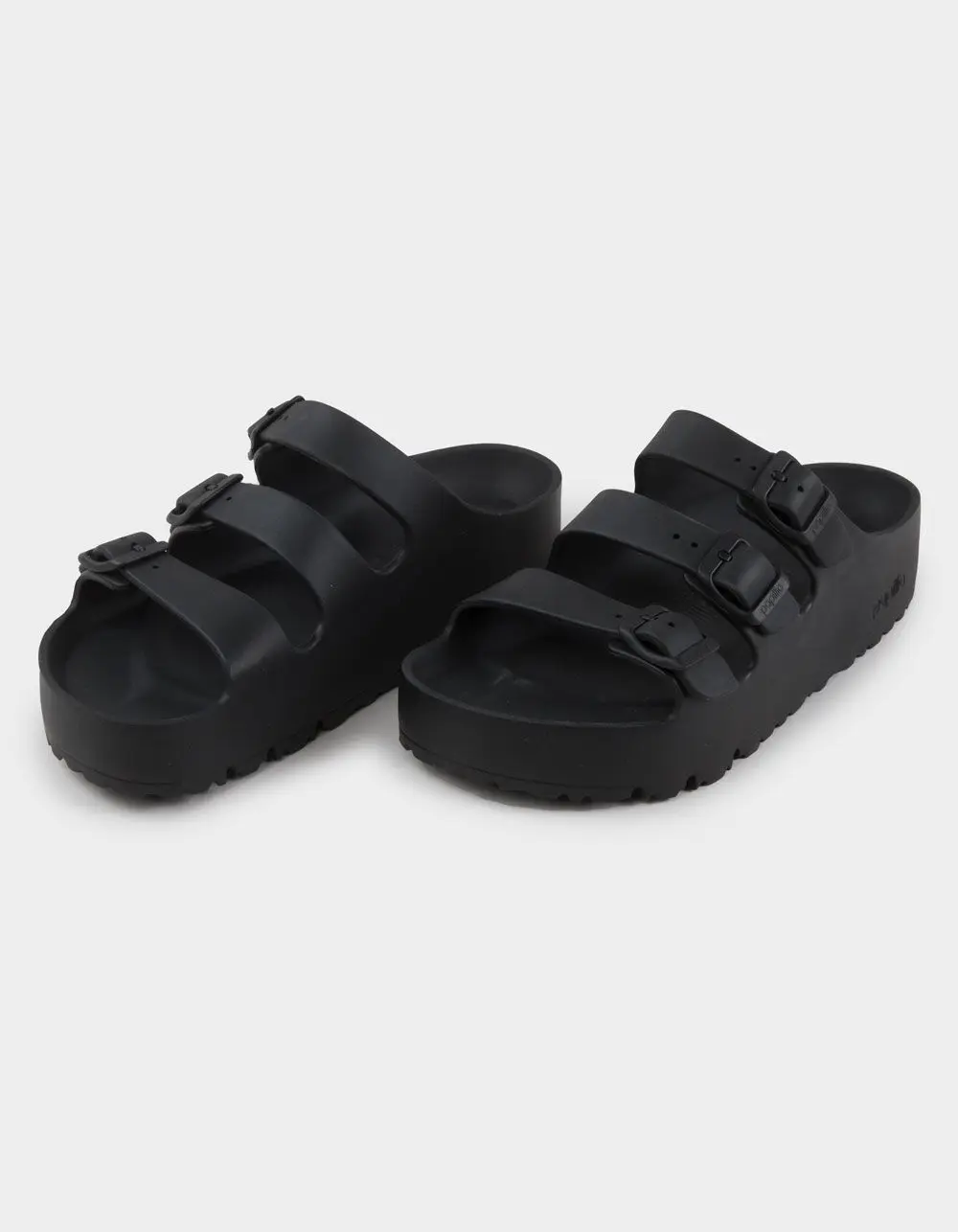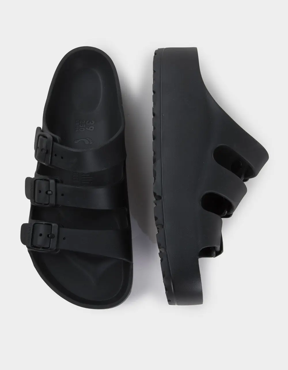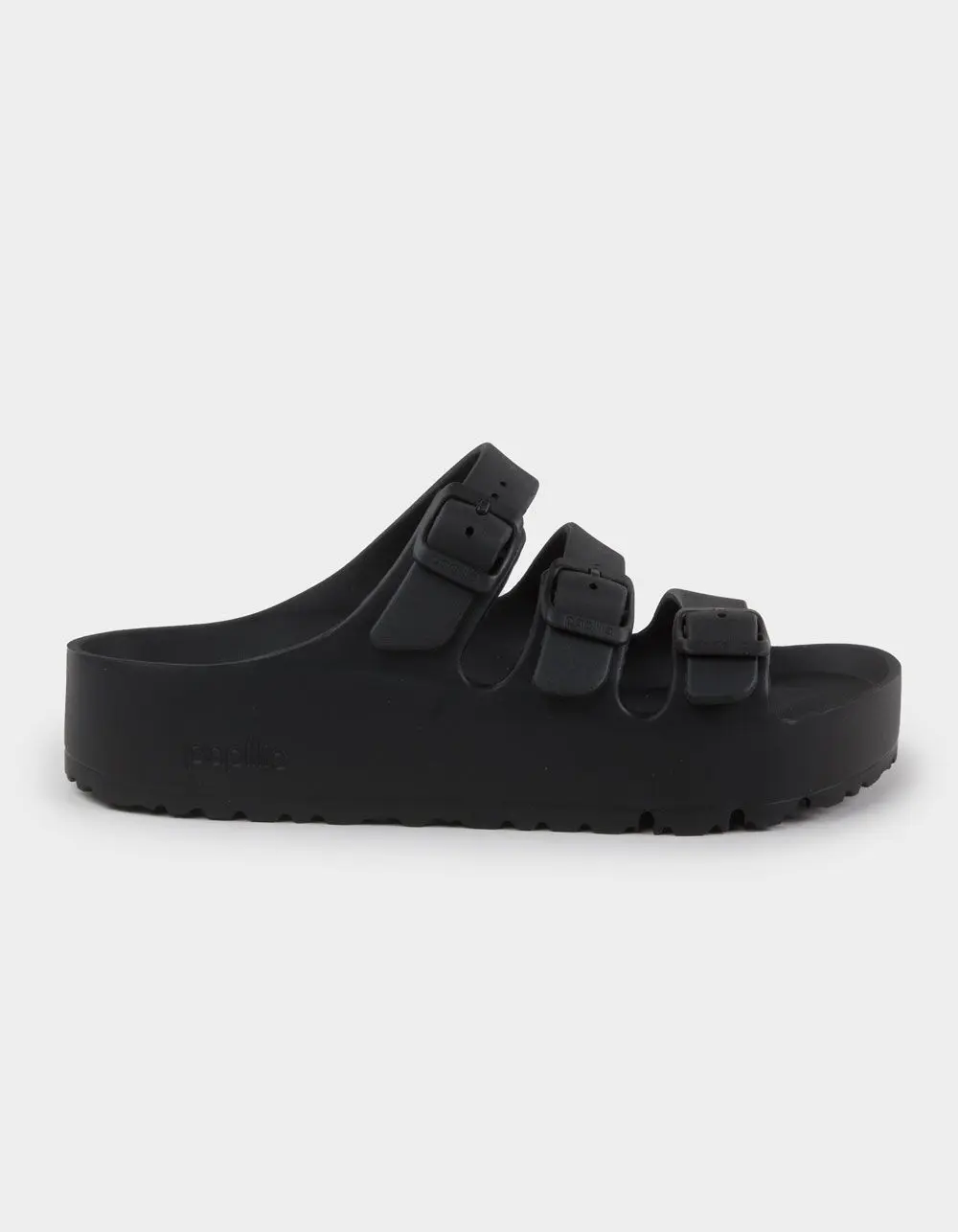 Birkenstock Papillio Florida EVA Platform Sandals. The strappy Florida sandal in a water-friendly platform. Made from lightweight EVA and contoured for footbed support so you can enjoy the walk from the pool to the beach. Contoured footbed. Made entirely of EVA. Water-friendly, lightweight & flexible. Platform sole: 1in. Three adjustable straps with pin buckles. Imported.